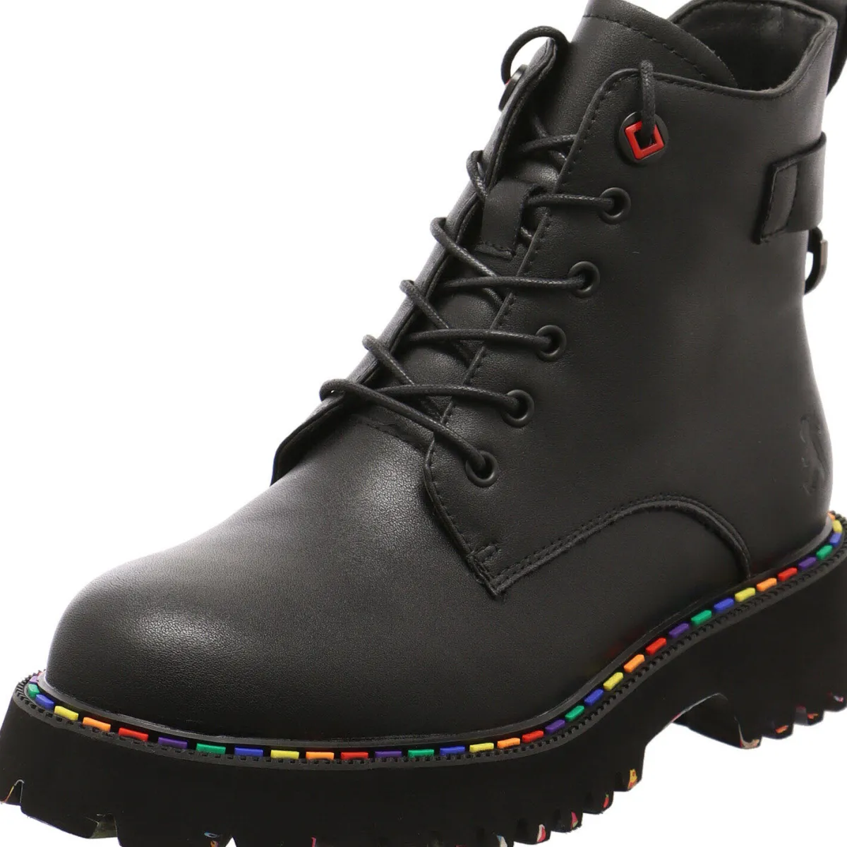 Das Obermaterial aus Echtleder in Schwarz ist um die Laufsohle mit Farbakzenten in Bunt verziert.