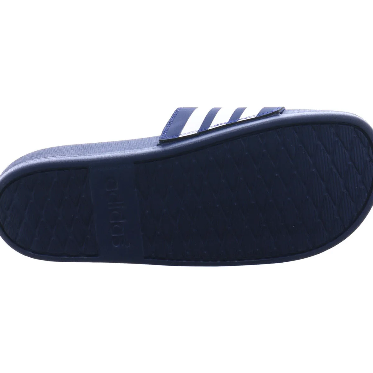 Besonders weich und flexibel begeistert der Slide in vielseitigem Blau mit drei Streifen in Weiß und macht das Tragen ausgesprochen angenehm.