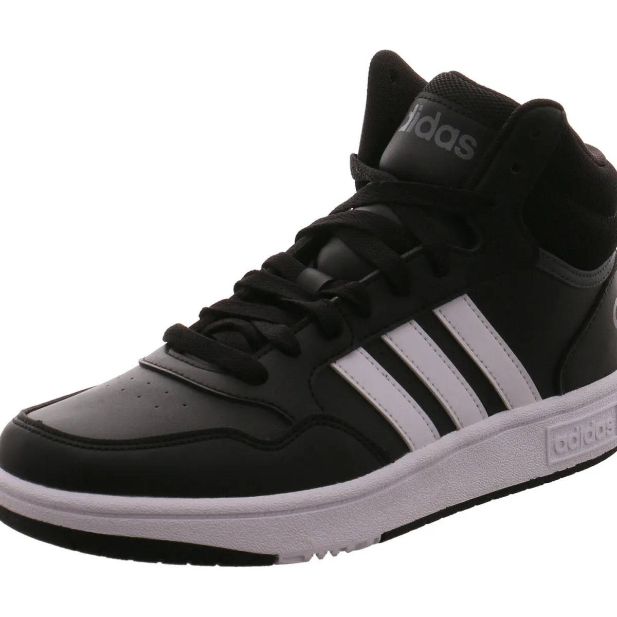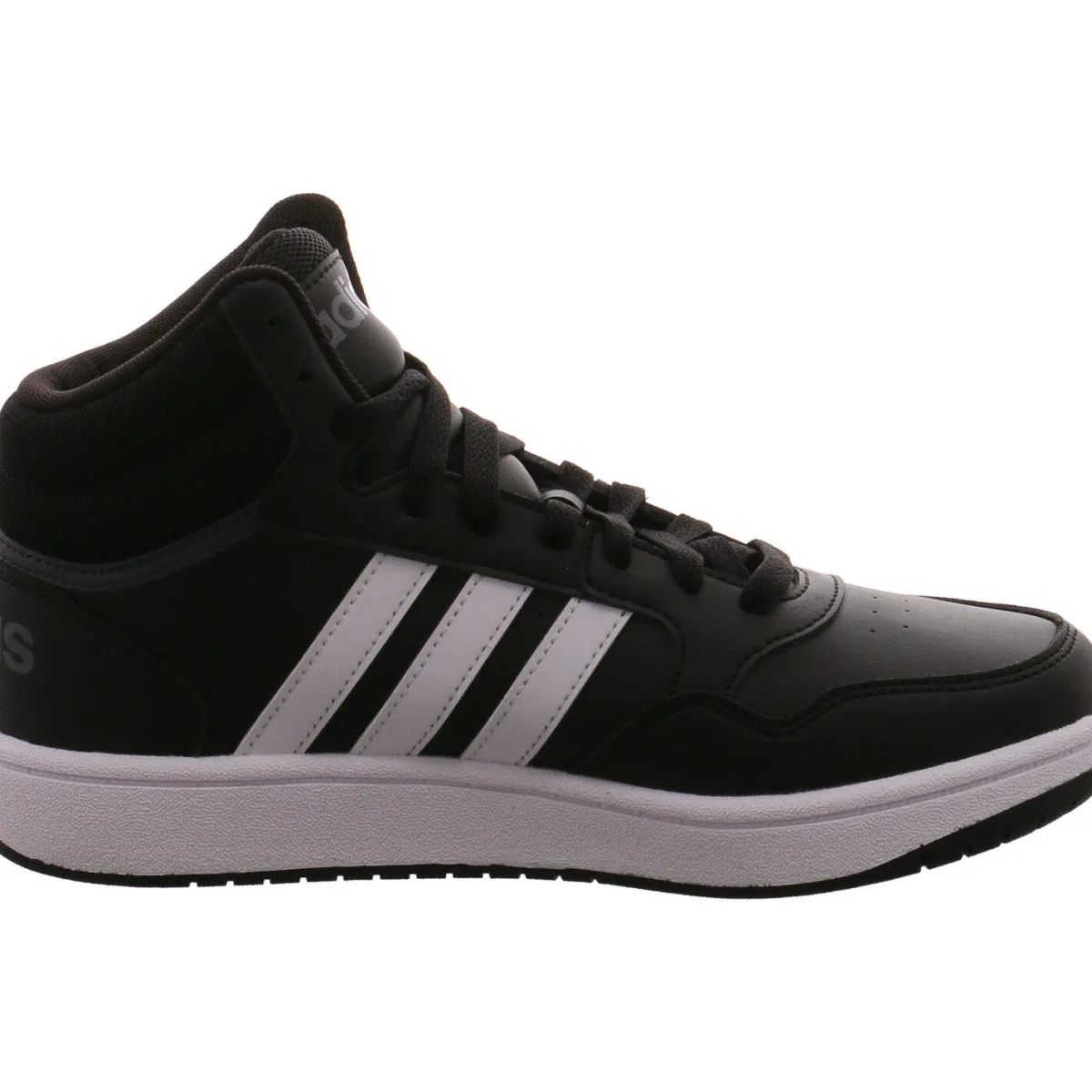 Das Obermaterial aus Kunstleder und Textil in Schwarz ist an den Seiten mit den klassischen drei Streifen in Weiß versehen. Der Schaft ist aus flexiblem Mesh, angenehm gepolstert und die Laufsohle ist farblich abgesetzt und gibt dem Schuh seinen typischen Sneaker Look.