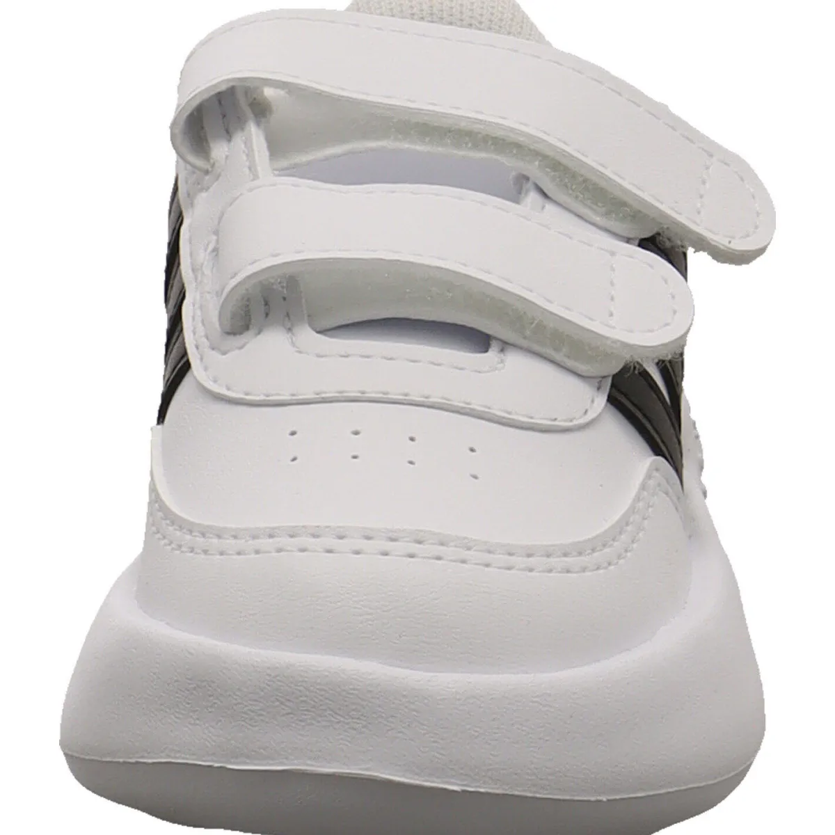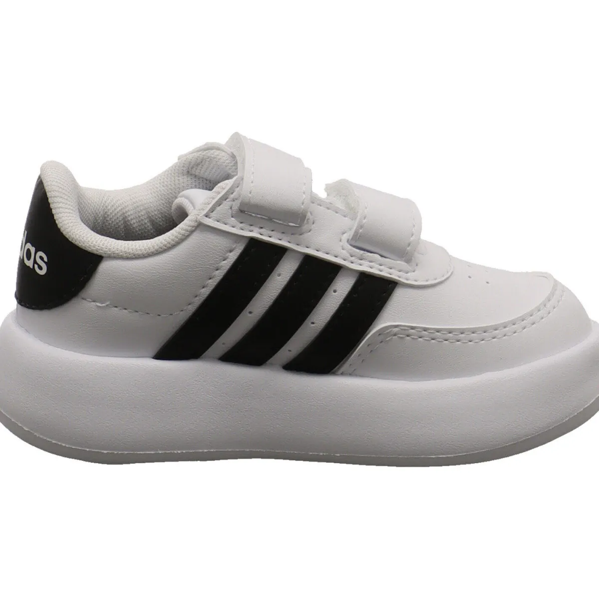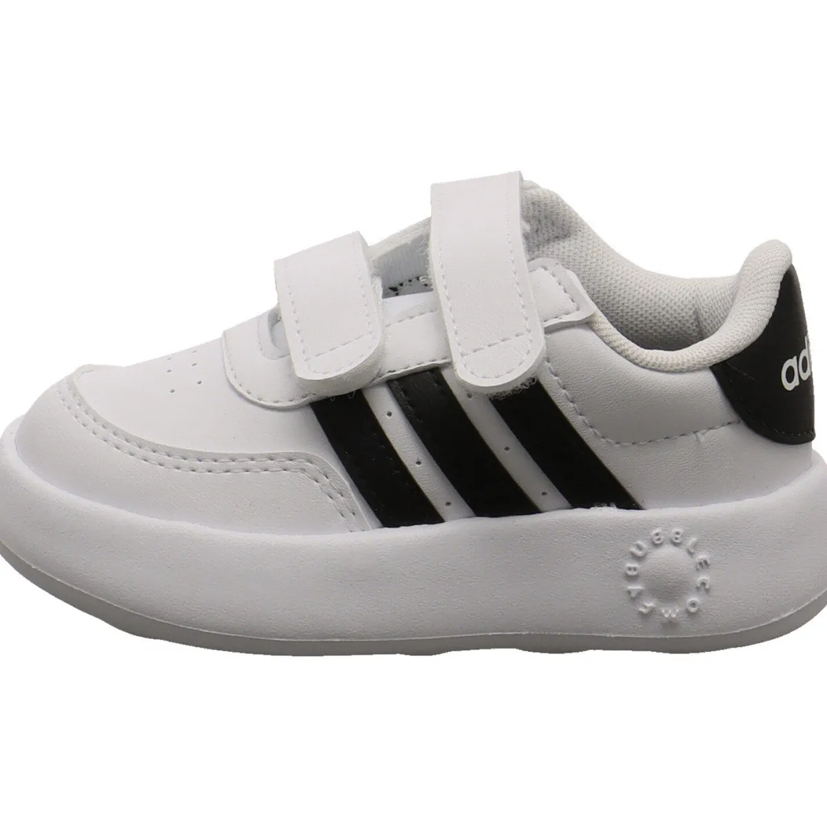 Das Obermaterial aus recycelten Materialien aus Kunstleder in Weiß ist mit den klassischen drei Streifen in Schwarz verziert. Und ideal für kleine Mädchen und Jungen. Dank des doppelten Klettverschluss ist das An- und Ausziehen ganz einfach. Die innovative Bubblecomfy Laufsohle macht den Schuh super leicht und flexibel und unterstützt Kinder bei ihren ersten Schritten. Die Innesohle ist als Wechselfußbett gearbeitet, so kannst du die optimale Größe für dein Kind ermitteln.