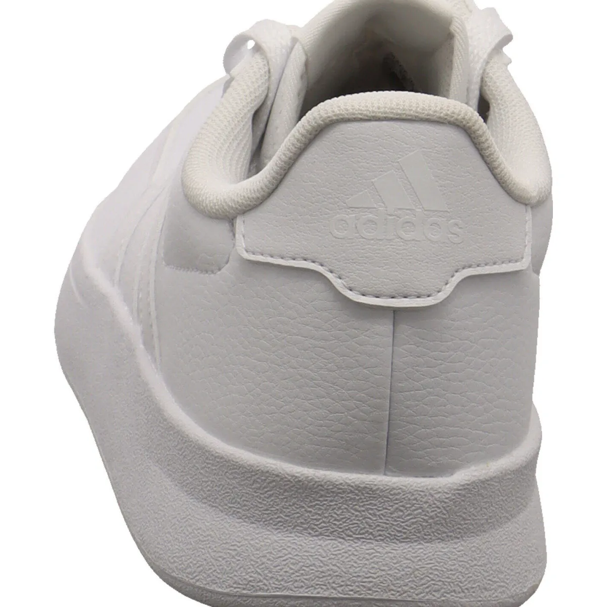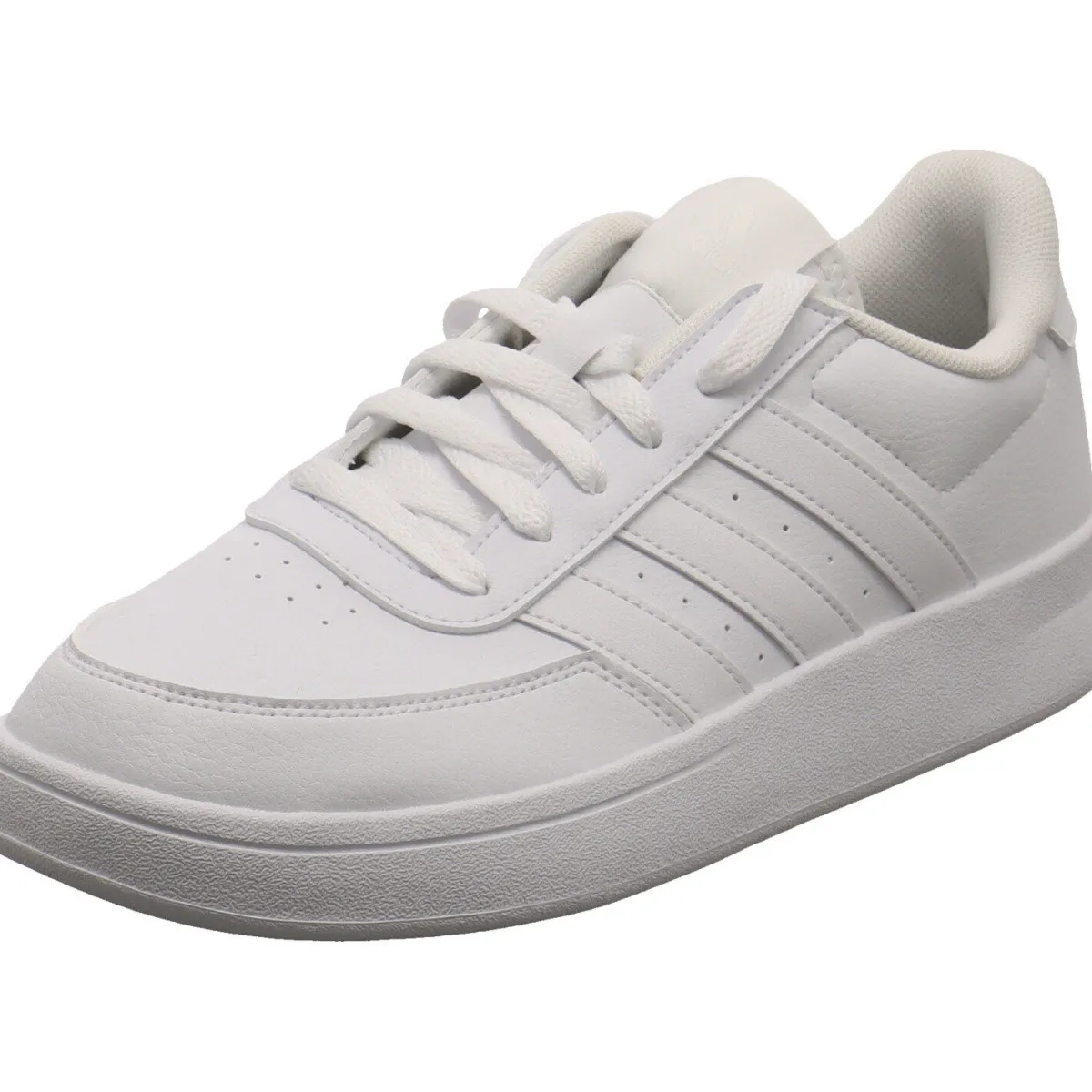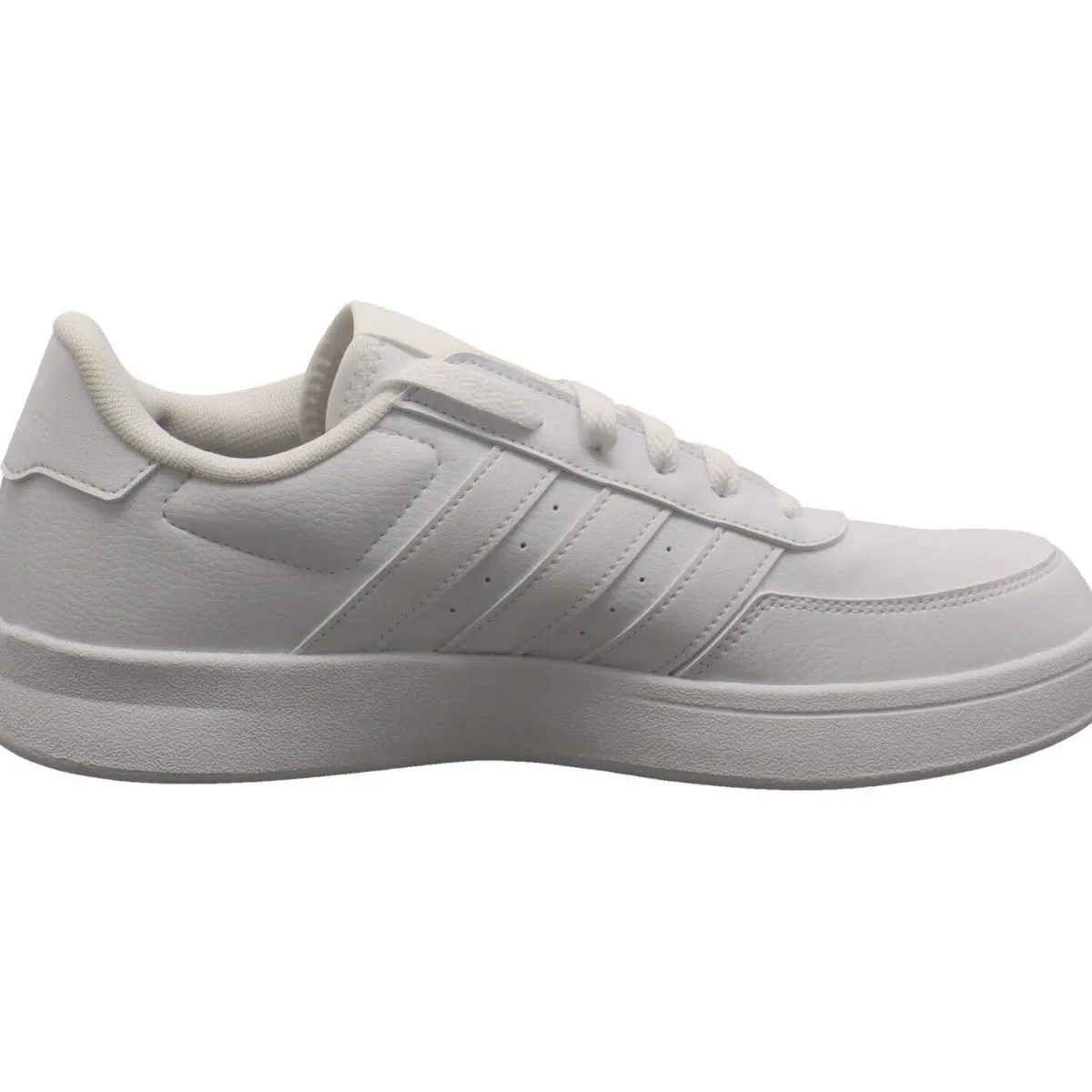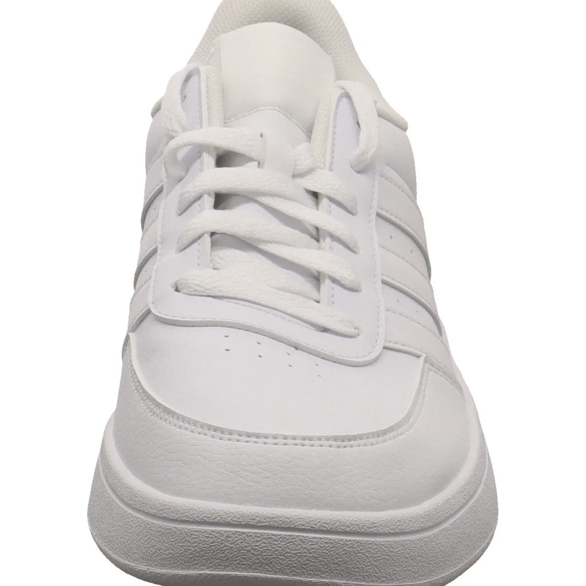 Das Obermaterial aus pflegeleichtem Kunstleder in Weiß, lässt sich gut kombinieren und wird durch die seitlichen drei Streifen und die Fersenkappe in Weiß optisch noch aufgewertet.