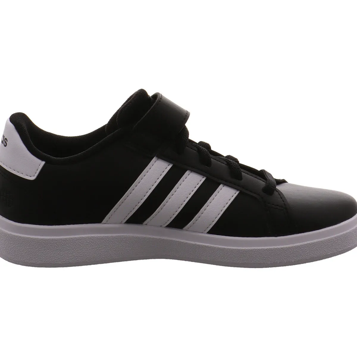 Das Obermaterial wurde aus pflegeleichtem Kunstleder in Schwarz gefertigt und wird durch die drei typischen Adidas Streifen in Weiß abgerundet.
