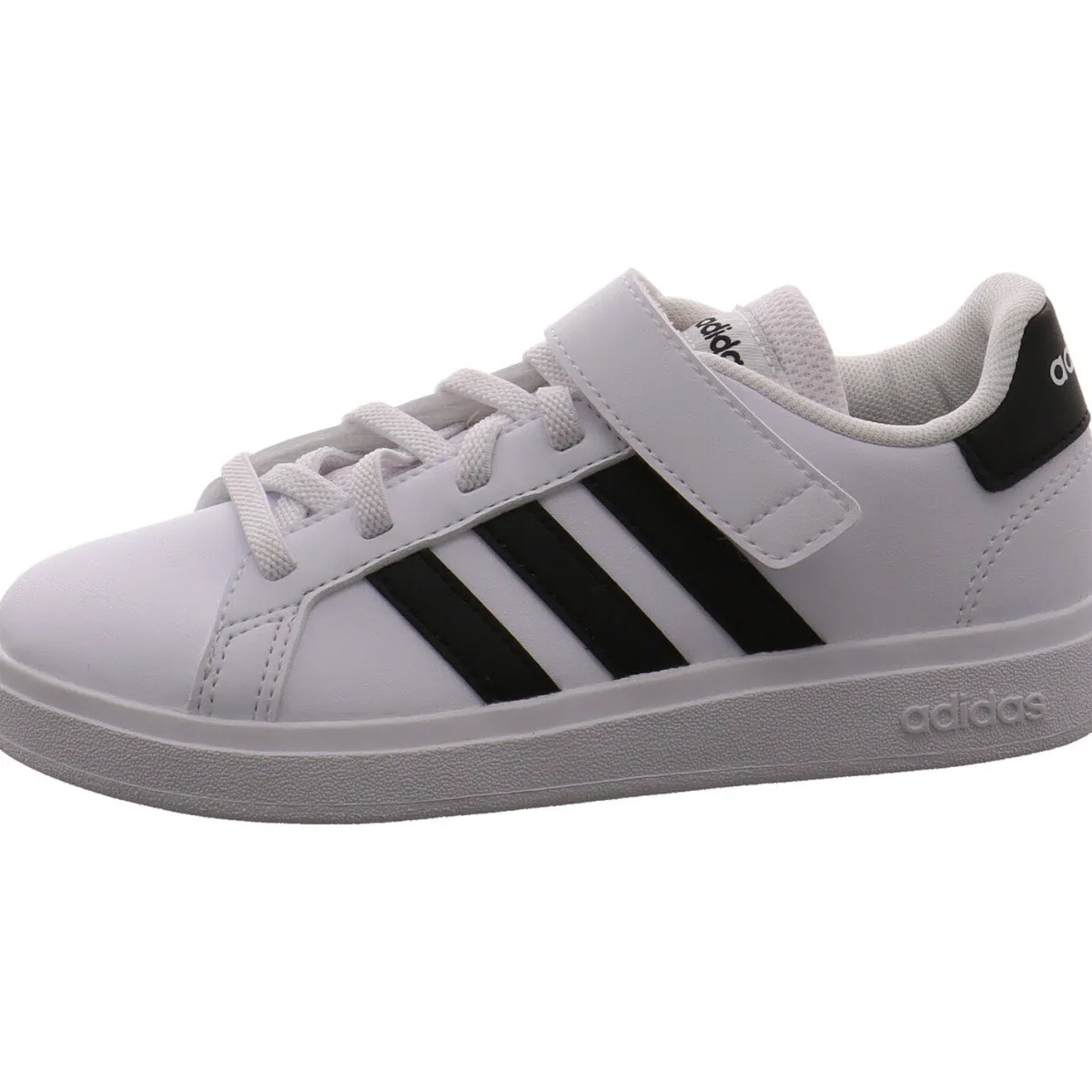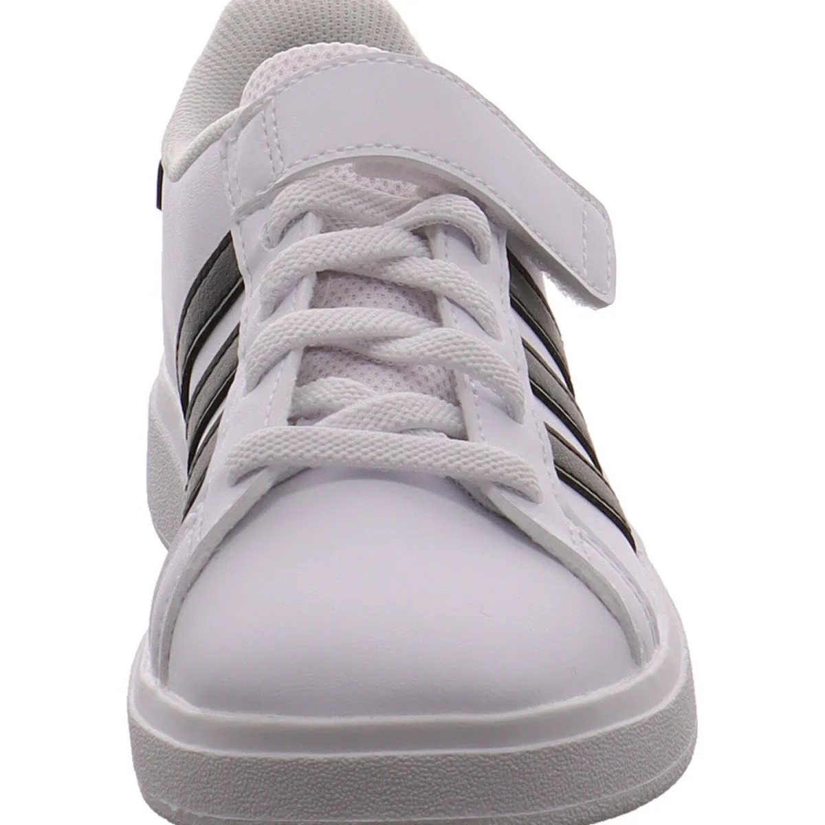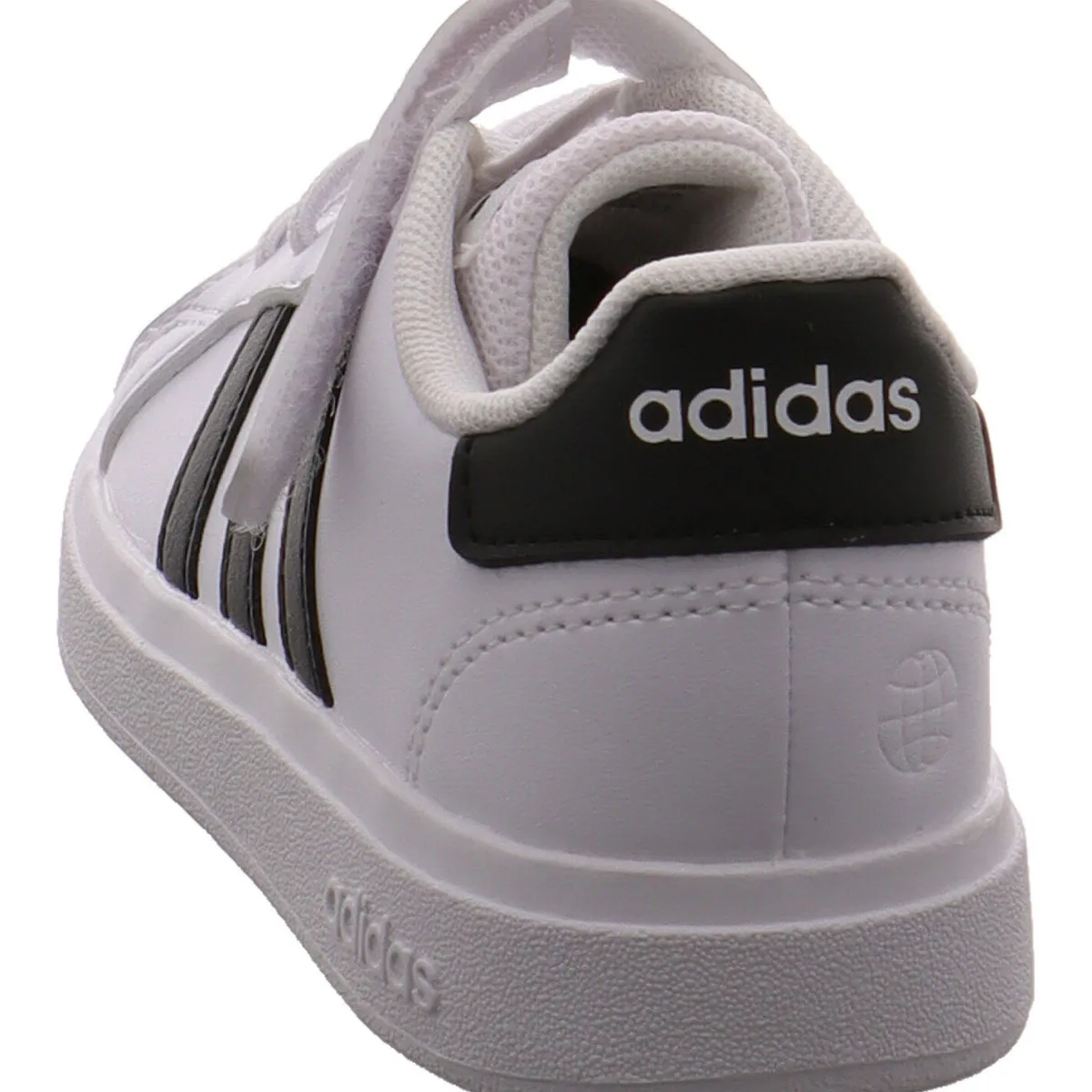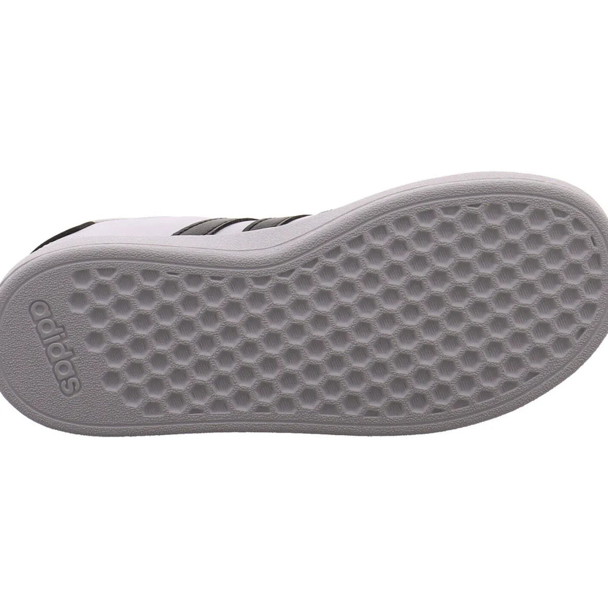 Das Obermaterial wurde aus pflegeleichtem Kunstleder in Weiß gefertigt und wird durch die drei typischen Adidas Streifen in Schwarz abgerundet.