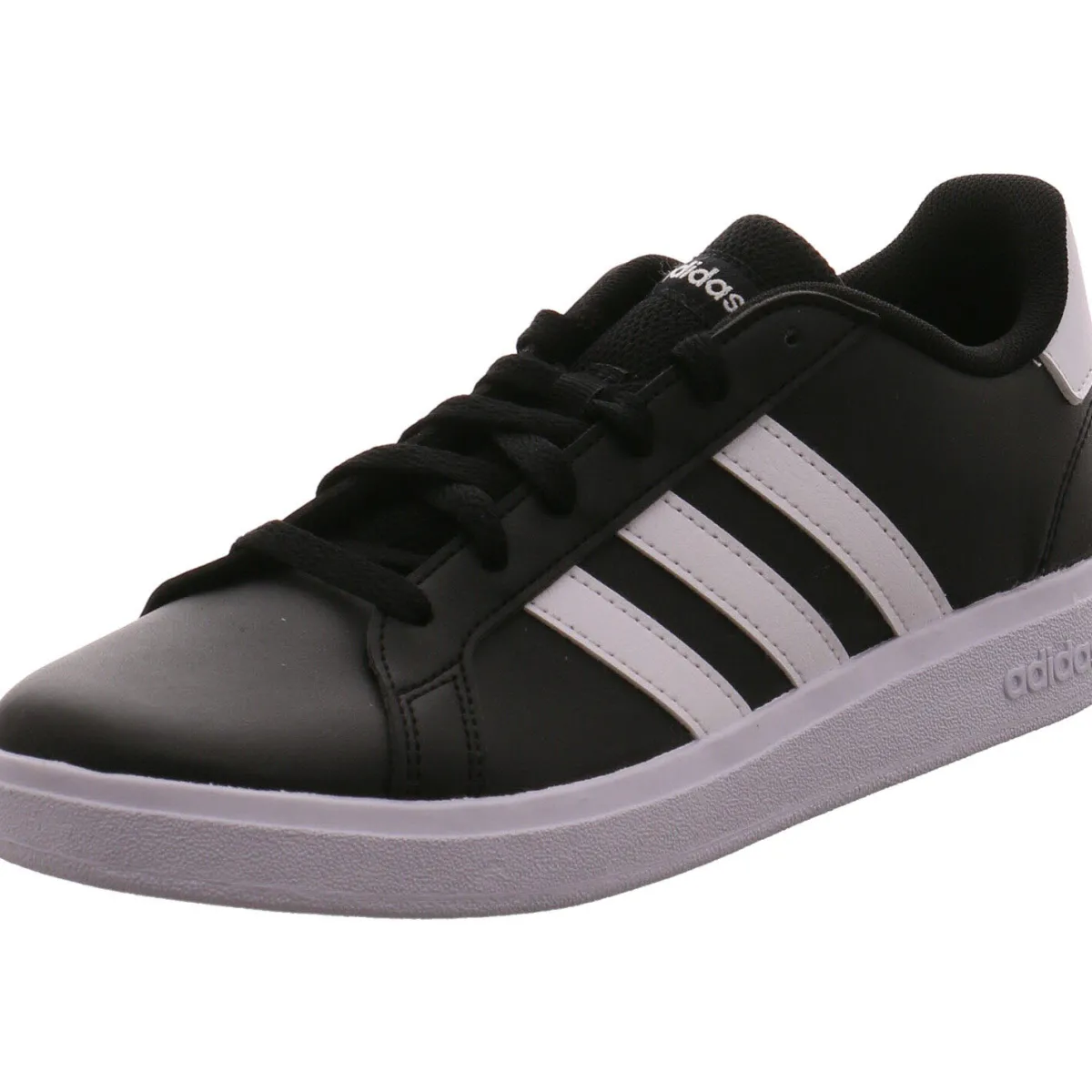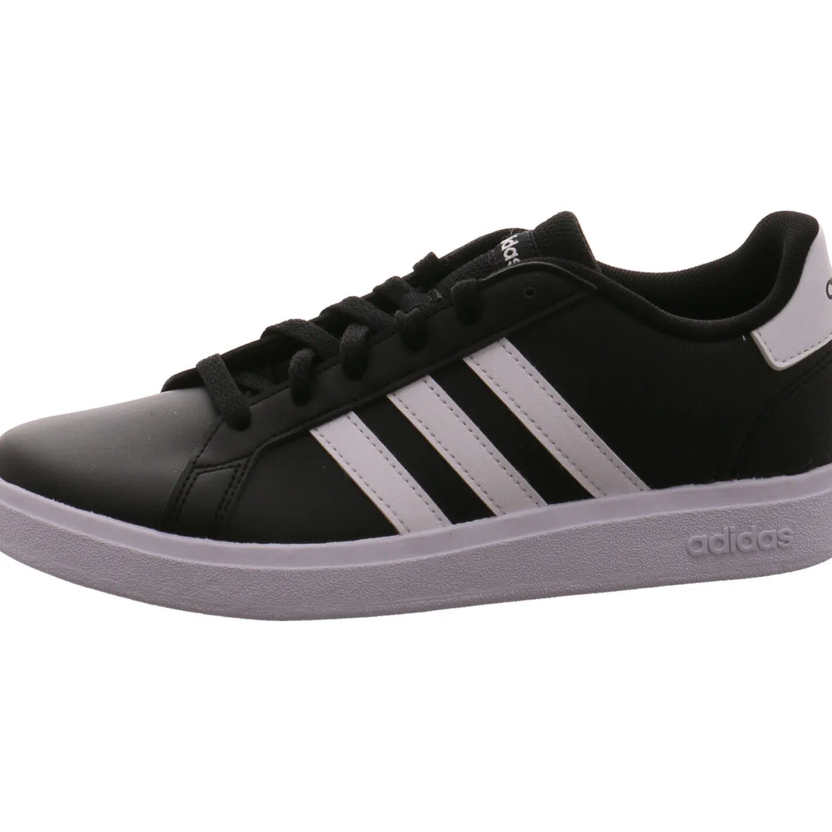 Das Obermaterial wurde aus pflegeleichtem Kunstleder in Schwarz gefertigt und wird durch die drei typischen Adidas Streifen in Weiß abgerundet.