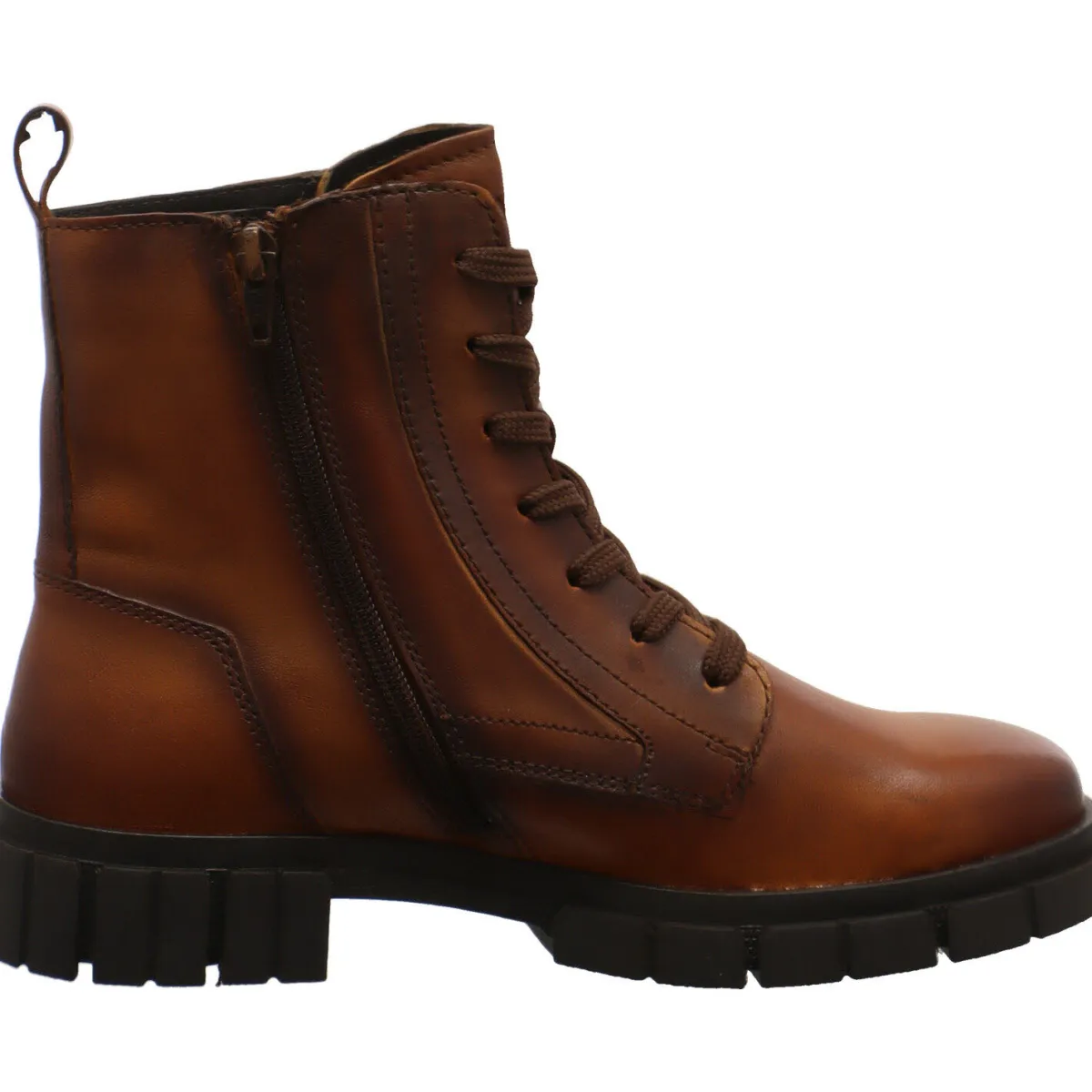 Durch die Schnürung und den seitlichen Reißverschluss, kann er perfekt an den Fuß angepasst werden und der Einstieg ist besonders einfach. Die kleine Lasche am Schaft hilft zusätzlich.