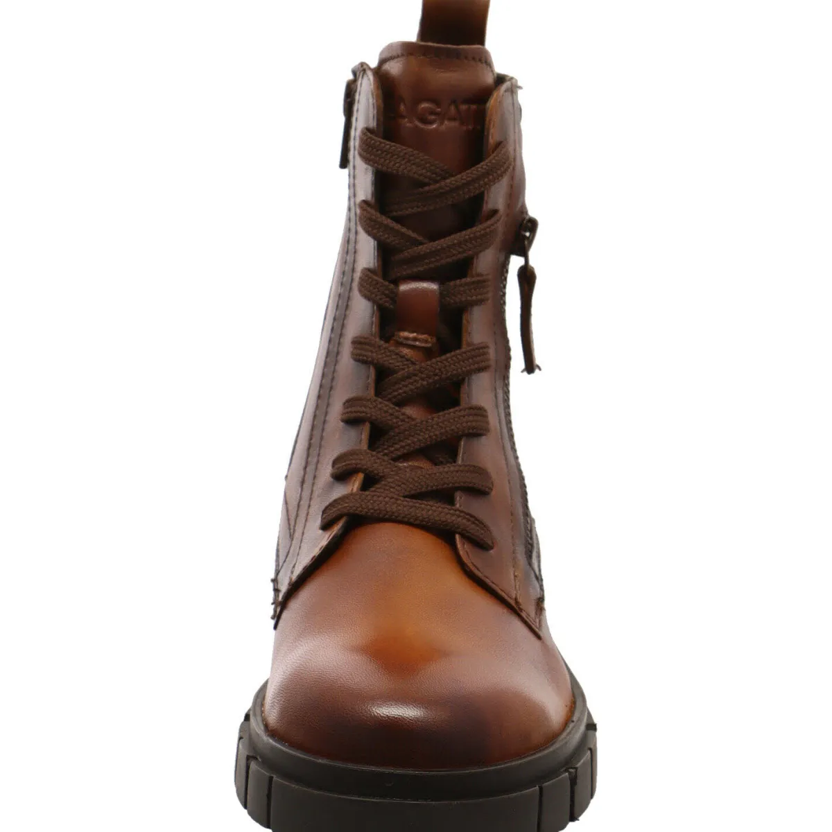 Gefertigt aus hochwertigem weichen Echtleder in Cognac Braun, ist er super zu jedem Outfit zu kombinieren. Tolle Details sind die angebrachten Ziernähte, der Zierreißverschluss an der Außenseite sowie die Bagatt-Logo Prägung.
