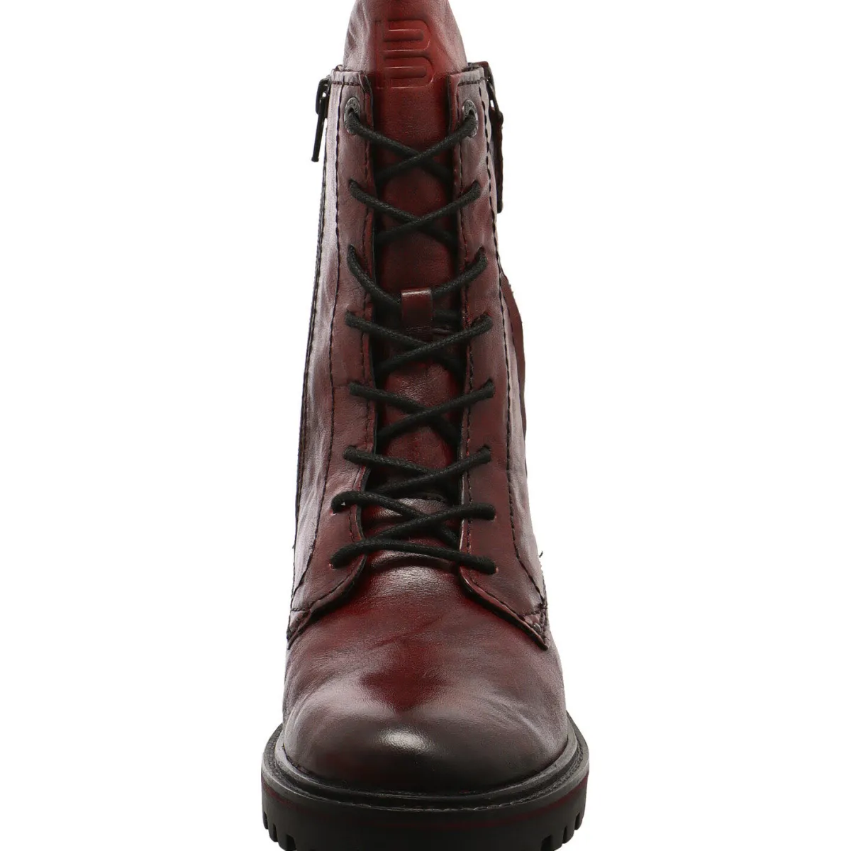 Optische Highlights sind der Dekozipper am Schaft, der Antik Look des Leders und die hochgezogene Zunge.
