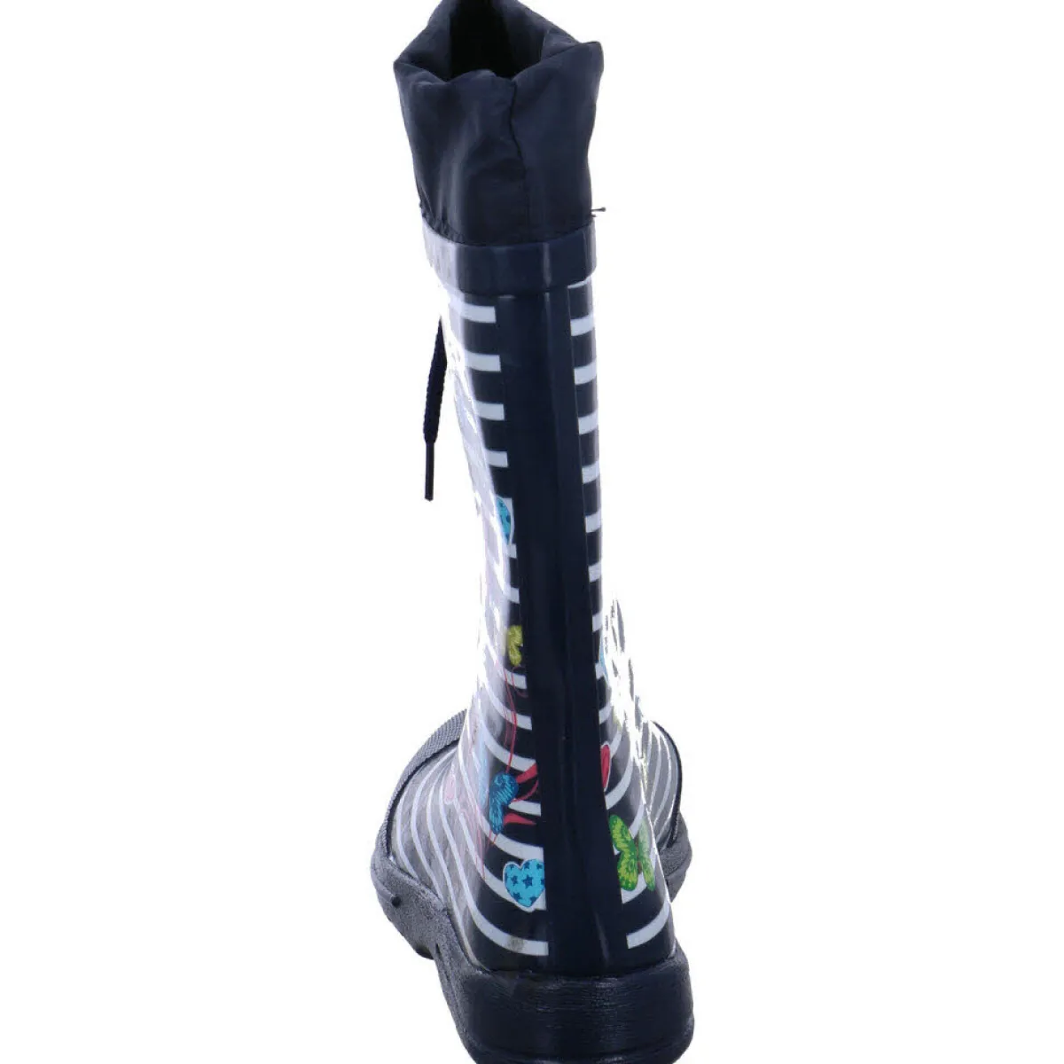 Der Stiefel fällt durch den farbenfrohen Druck mit Schmetterlingen und den Streifen Look sofort ins Auge und ist ein Highlight für jedes Mädchen.
