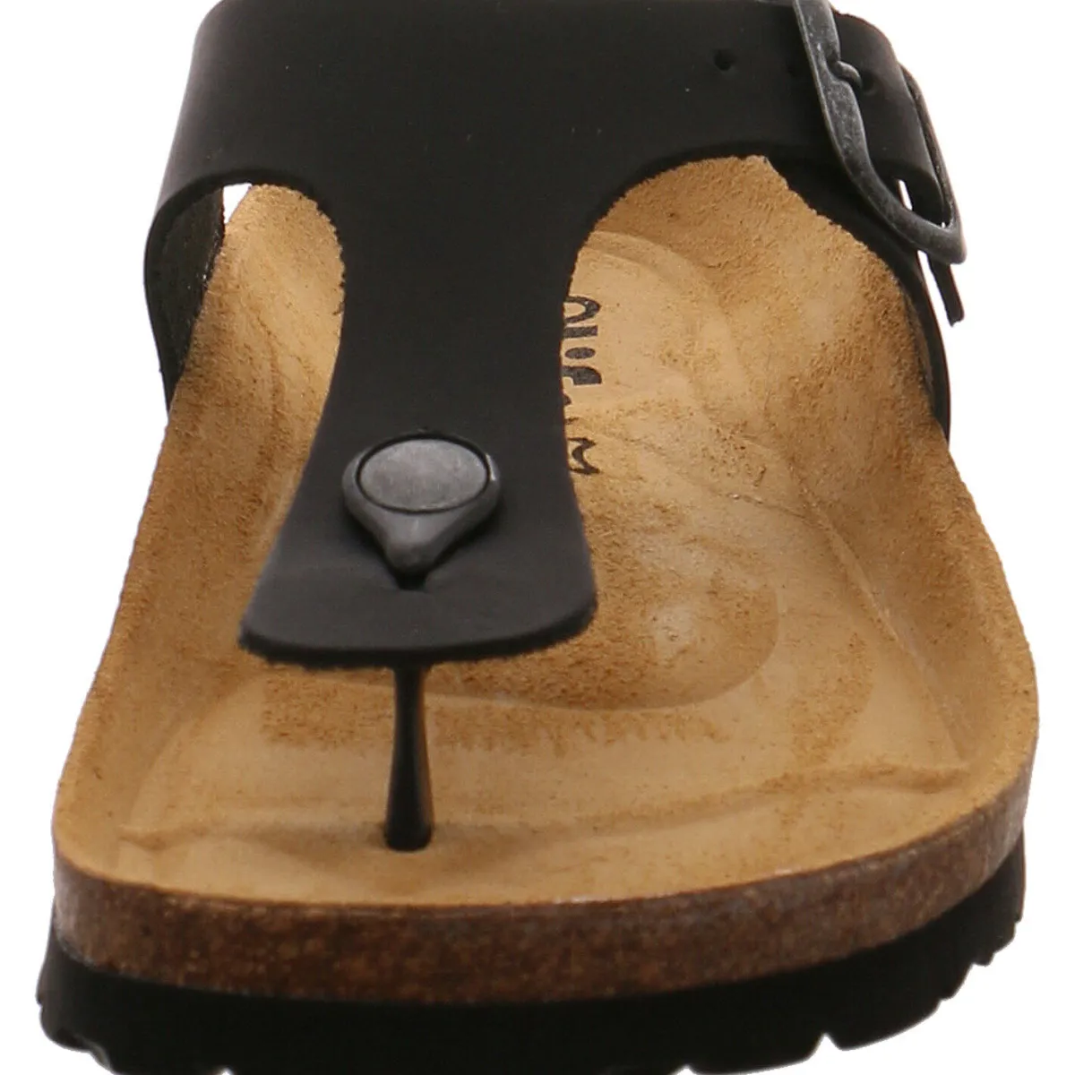 Für Komfort sorgen das anatomisch geformte Fußbett aus Echtleder, hergestellt in Spanien und die regulierbare Schnalle.