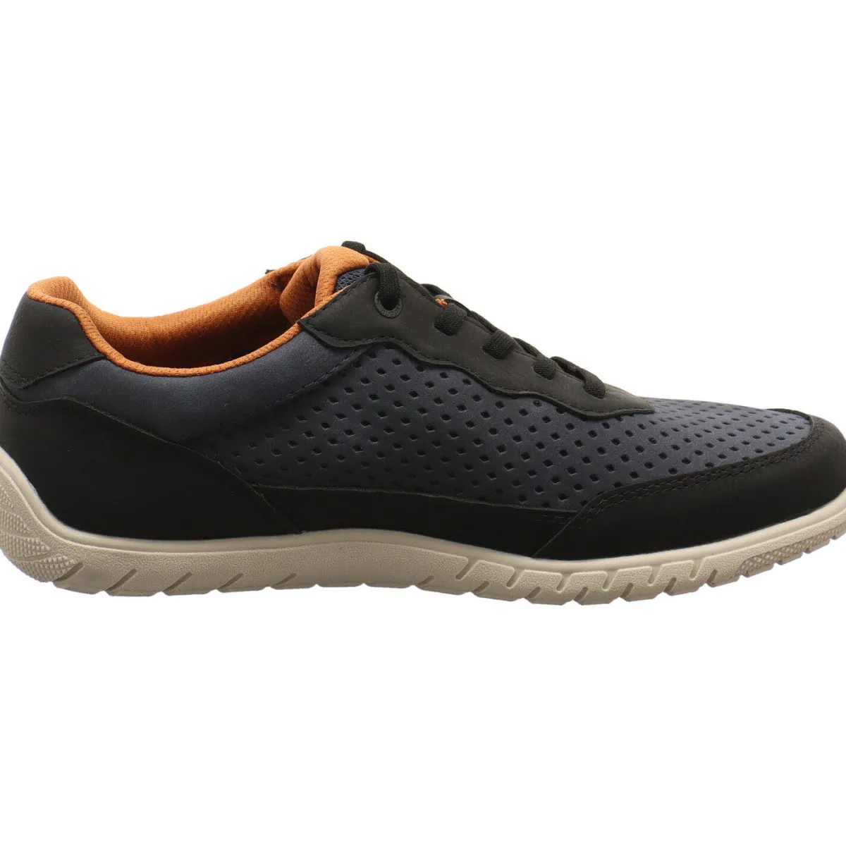 Das pflegeleichte Material aus Kunstleder und Textil in Blau ist mit kleinen Lasercuts versehen, diese sorgen für eine tolle Luftzirkulation auch an warmen Tagen. Der Schaft ist angenehm weich gepolstert und mit der Schnürung kannst du ihn auf deine Bedürfnisse anpassen. Das Innenfutter ist am Einstieg Orange abgesetzt und ein Hingucker. So kannst du ihn auch super mit einer kurzen Hose kombinieren. Die Laufsohle ist Weiß und runden den sommerlich, leichten Look perfekt ab.
