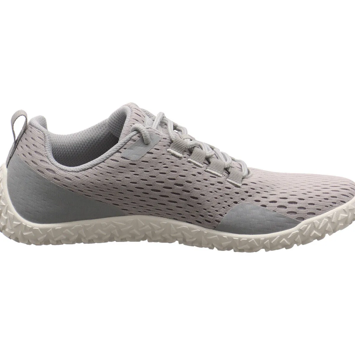 Das textile Obermaterial in Hellgrau ist flexibel und atmungsaktiv und die Innensohle ist herausnehmbar. Damit verfügt der Sneaker über kein Fußbett mehr und vermittelt ein tolles Barefoot Feeling.