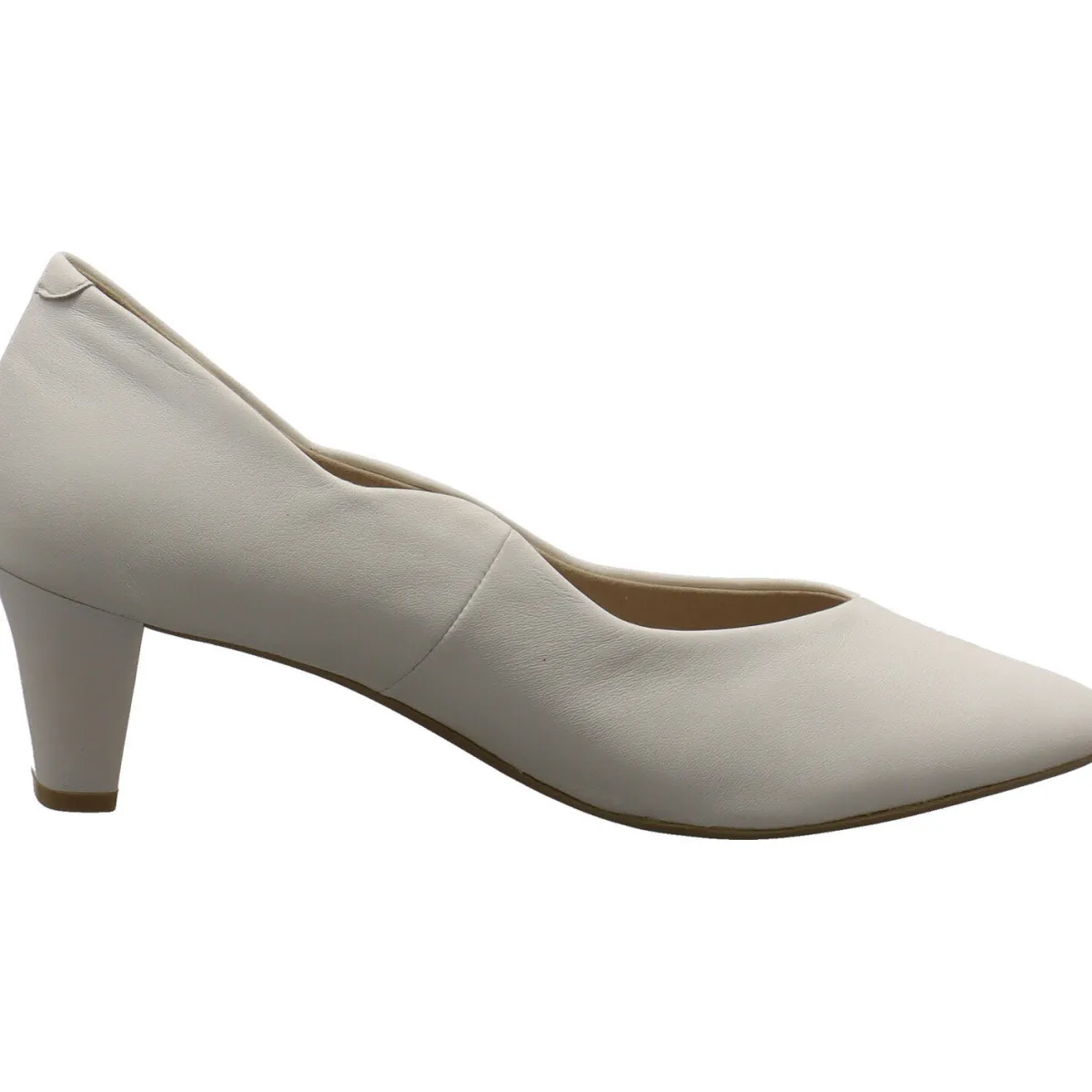 Er wurde aus hochwertigem Echtleder in Weiß gefertigt. Dabei fällt die besondere Schnittform des Einstieg sofort auf. Abgerundet wurd dies durch den schönen dezenten Trichterabsatz in Lack Optik. Die Echtleder Innensohle ist weich gepolstert und bietet einen tollen Tragekomfort.