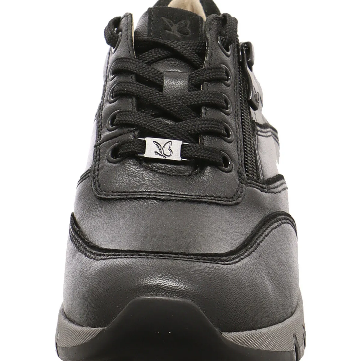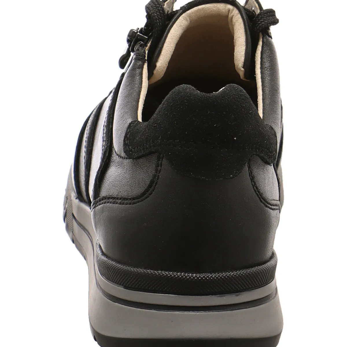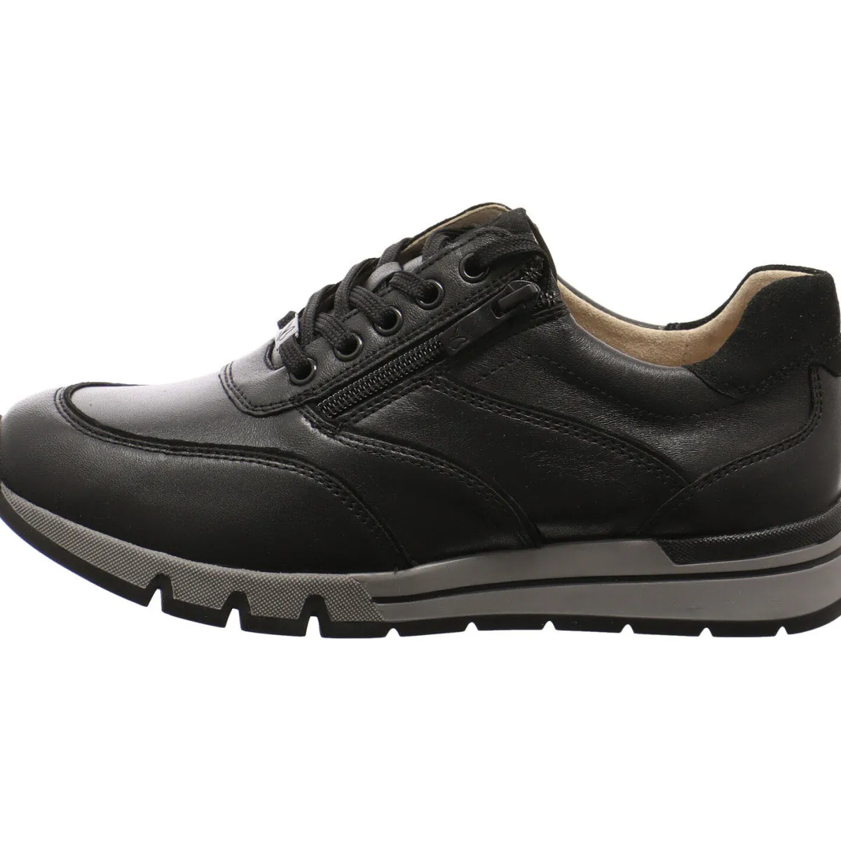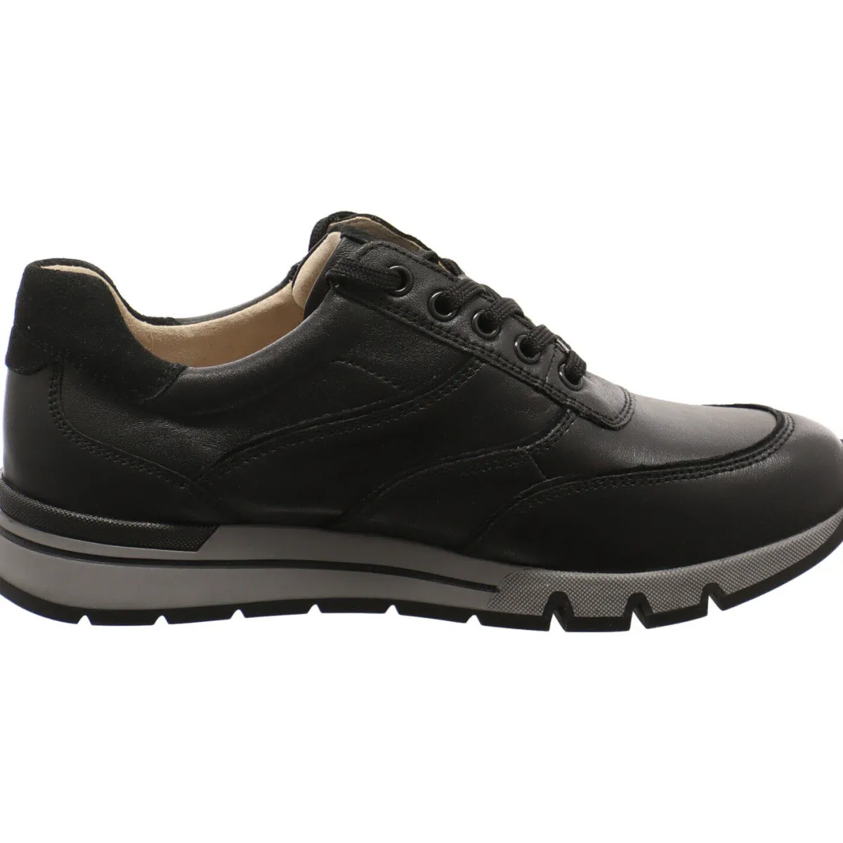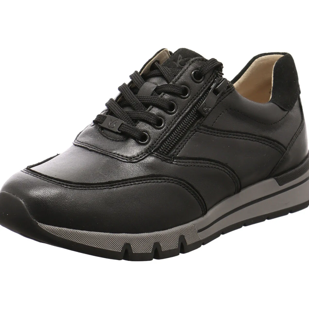 Durch die Schnürsenkel und den seitlichen Reißverschluss ist ein besonders leichter Einstieg möglich. Die Innensohle ist als Wechselfußbett gearbeitet, dadurch wird das Tragen eigener Einlagen ermöglicht. Die Weite H bietet zusätzliche Weite und Komfort.