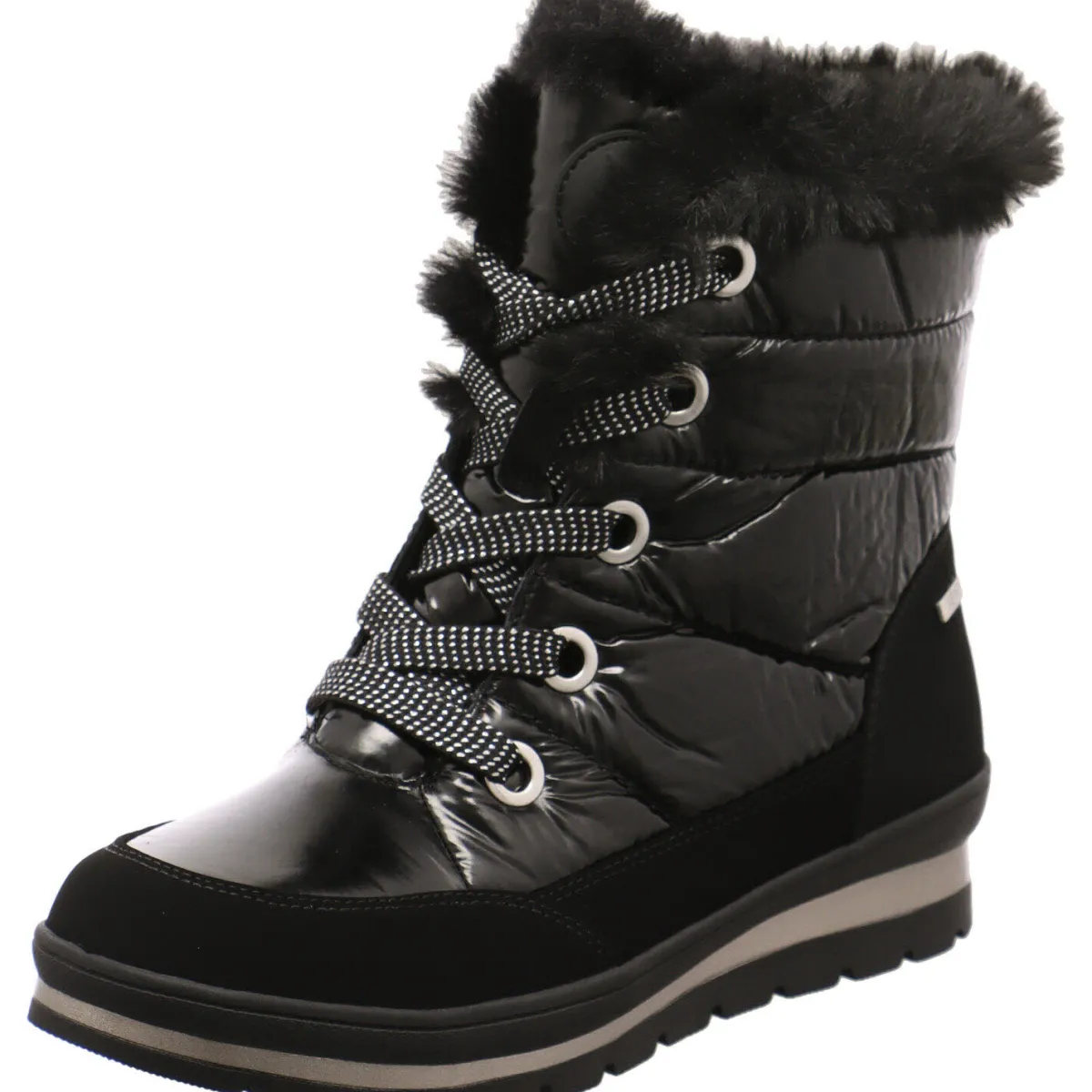 Der Schaft ist aus gestepptemTextil in einer glänzenden Lackoptik gefertigt. Zusätzlich ist der Schuh mit einem funktionalen Reißverschluss versehen, was den Enstieg besonders einfach und komfortabel macht.