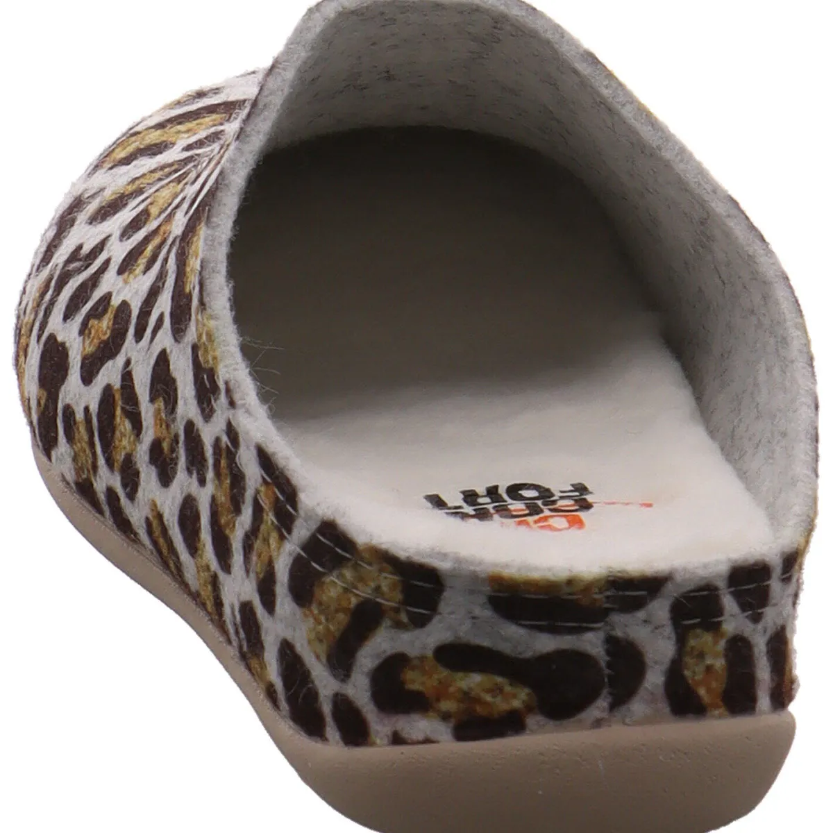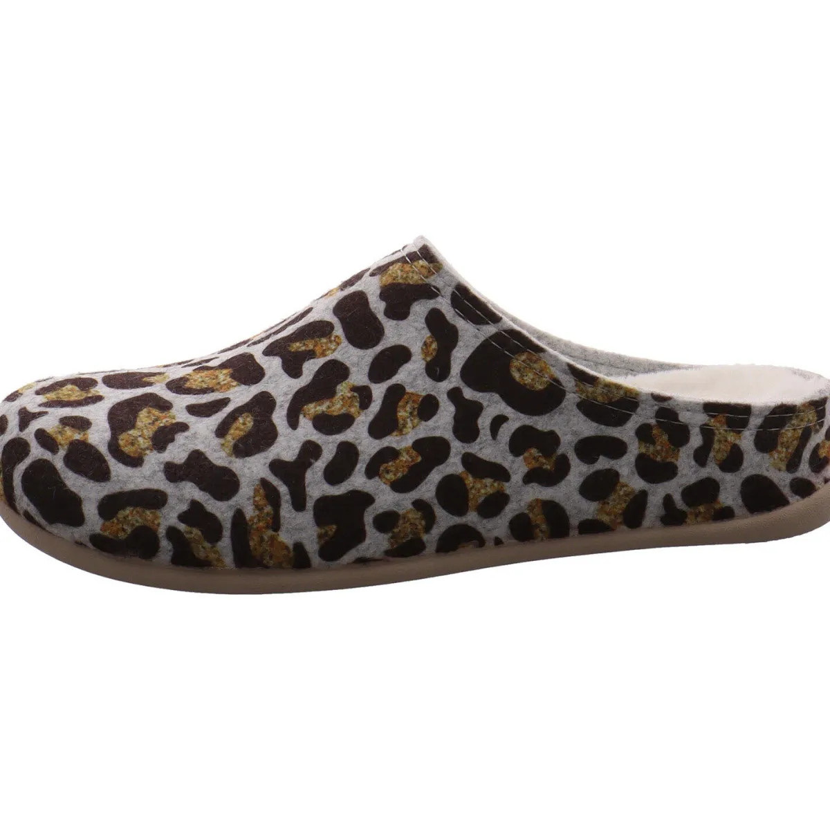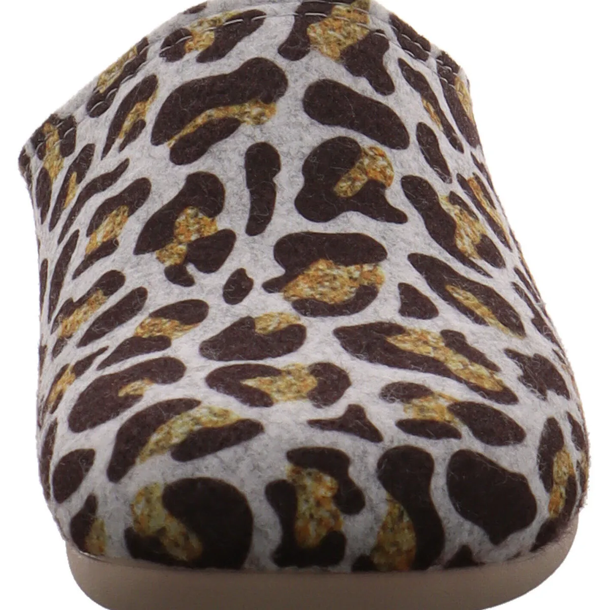 Das Obermaterial aus Textil Filz macht den Schuh robust und langlebig und begeistert mit seinem Leo Animal Print. Dabei sorgt das flauschige Innenfutter für warme Füße. Die Innensohle ist als Wechselfußbett gearbeitet, wodurch auch eigene Einlagen verwendet werden können.