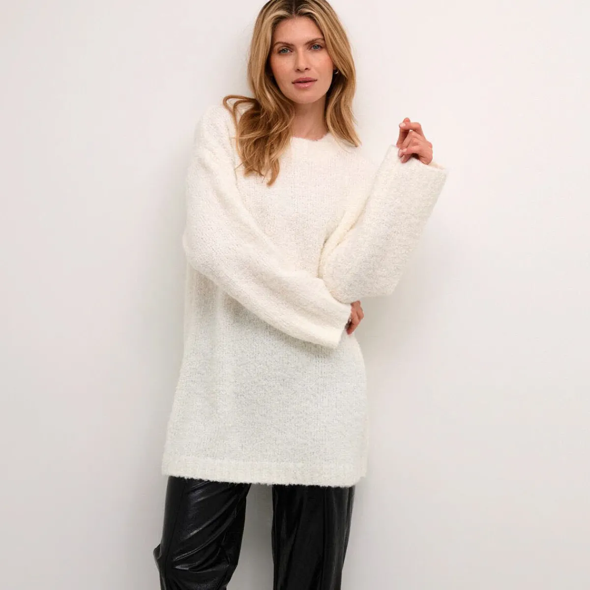 Das hochwertige Strickgewebe in Weiß ist besonders flauschig gearbeitet.