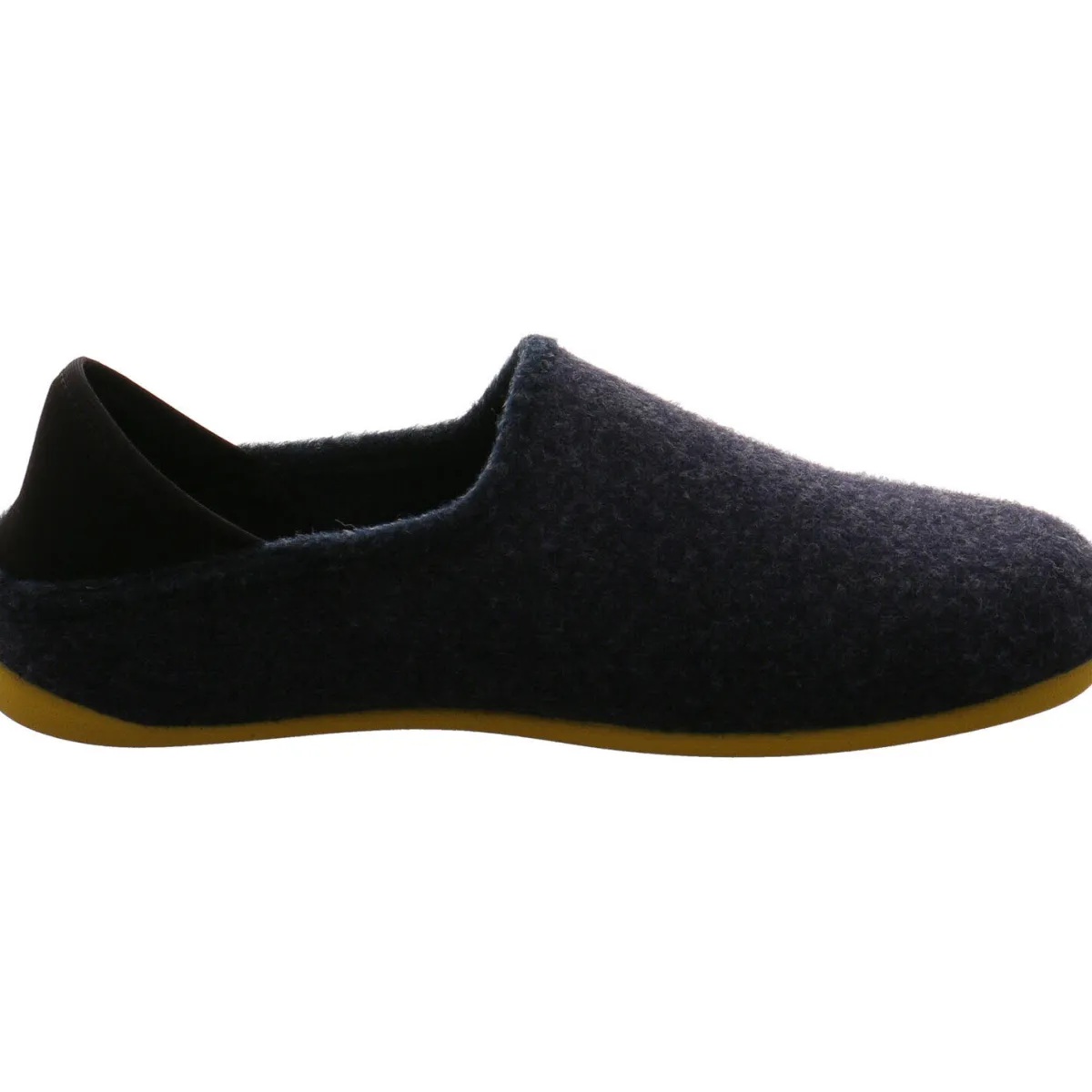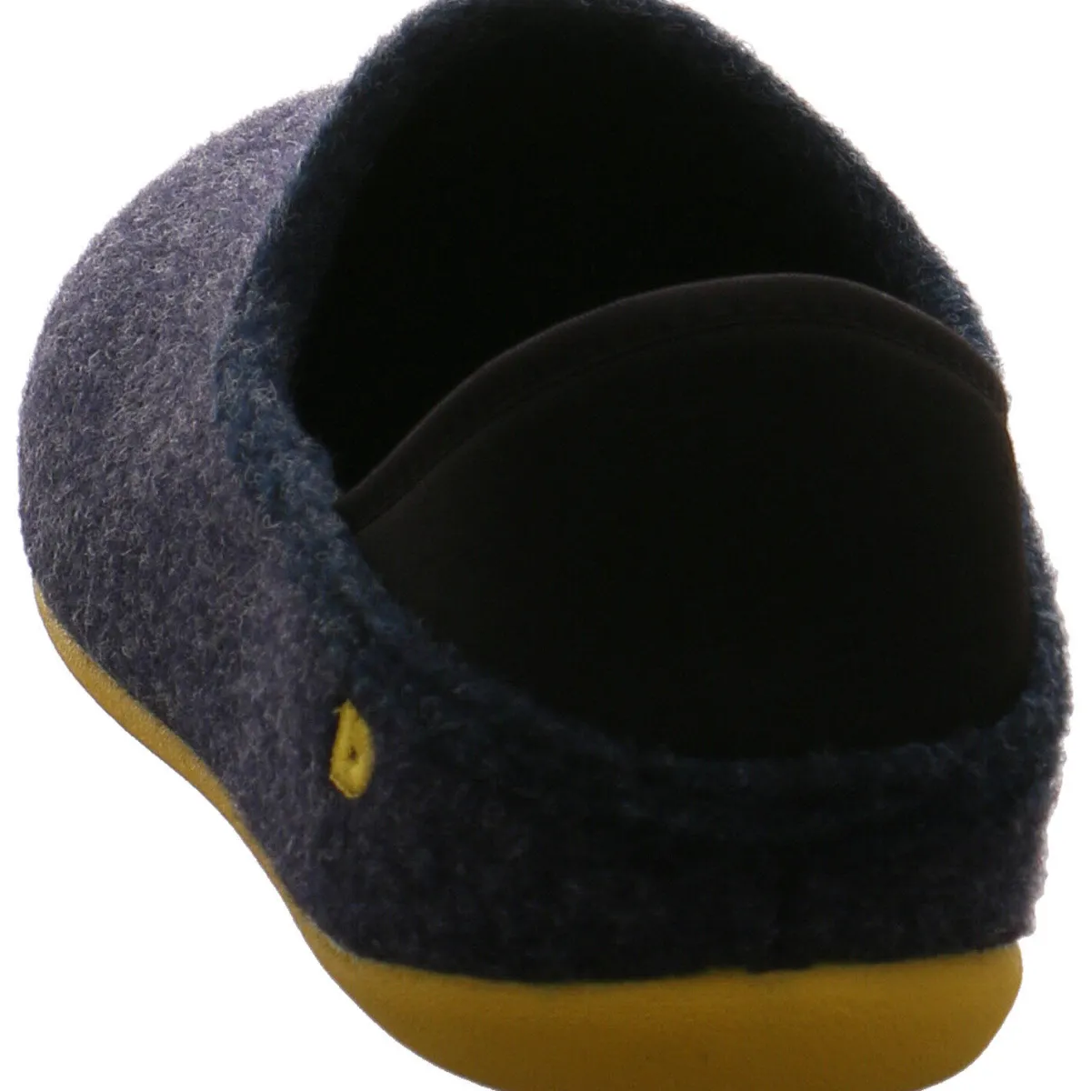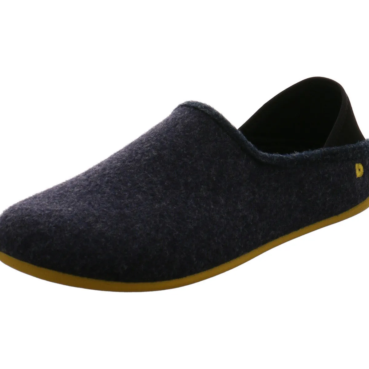 Dieser Herren Hausschuh von Dinamic in Blau wurde aus Recyceltem Polyester aus PET Flaschen gefertigt und das Obermaterial hat die Haptik von Filz. Ein kleiner elastischer Einsatz an der Ferse gibt dem Fuß einen festen Halt und dennoch die Bequemlichkeit einer Pantolette. Ein absoluter Hingucker ist die Laufsohle in Gelb und das Markenlogo als Stickerei an der Außenseite.
