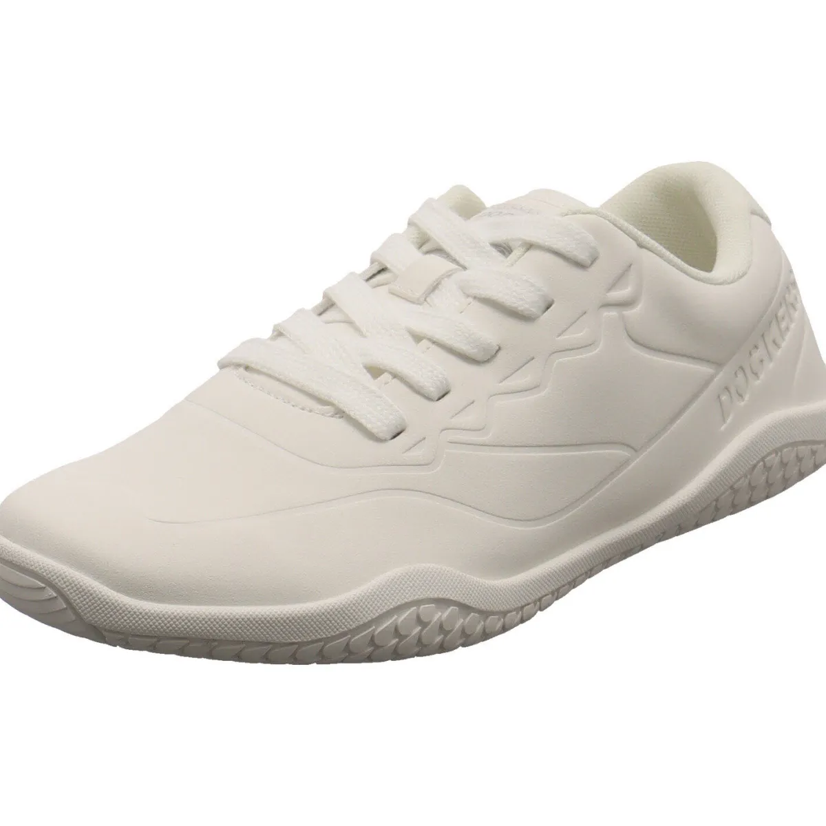 Das Obermaterial wurde aus einem pflegeleichten Kunstleder in weicher Nubukoptik in Weiß gefertigt und wurde mit der Dockers Markenaufschrift an der Seite versehen, welche ein echter Hingucker ist.