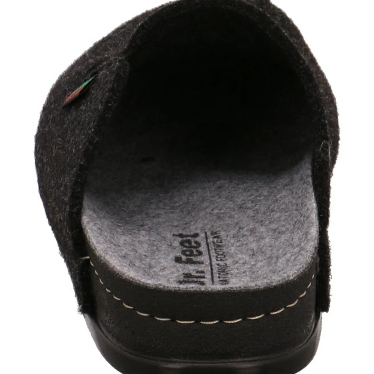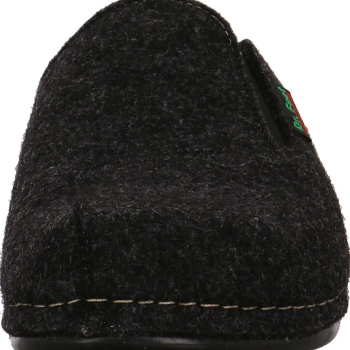 Das Obermaterial aus Filz in dunkelgrau und schwarz macht die Schuhe zudem robust und langlebig, während der seitliche Dehngummi für eine optimale Passform sorgt.