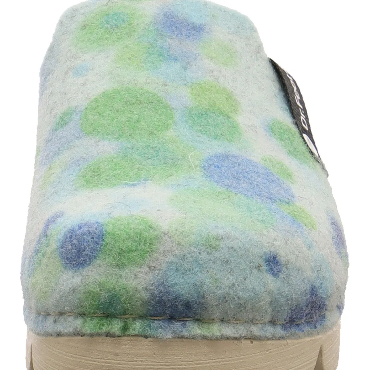 Das Obermaterial aus temperaturausgleichendem Naturwollfilz, fällt durch die tolle Farbgebung in Blau mit Grün direkt ins Auge. Das Material ist umweltfreundlich und recycelbar.
