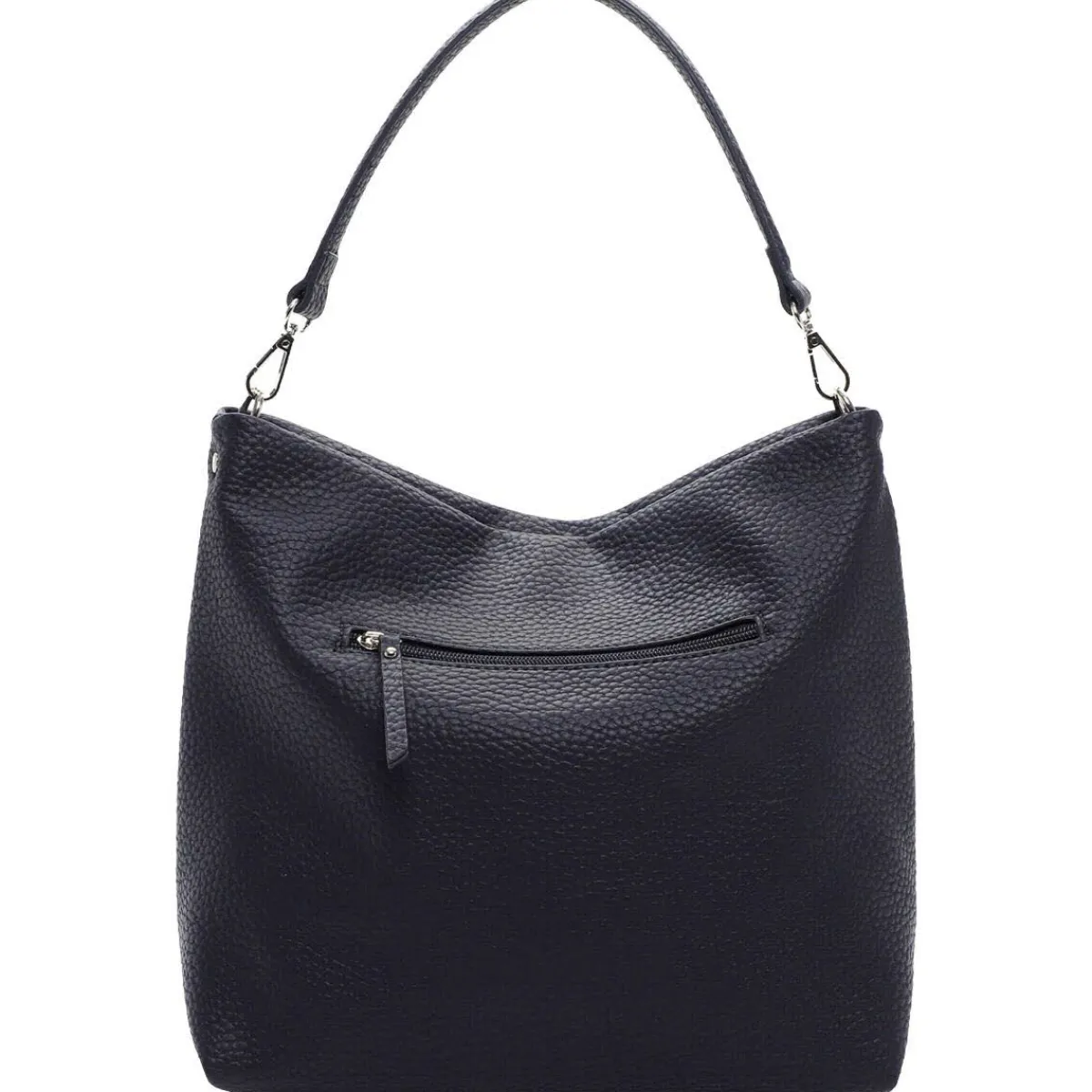 Edel verarbeitetes Kunstleder in Blau wurde mit einer angenehmen Haptik und einer authentischen Narbung versehen, die der Handtasche das gewisse Etwas verleiht. Der Schultergurt ist abnehmbar und kann durch einen breiteren Umhängegurt ersetzt werden, so dass du die Tasche auch crossover tragen kannst.