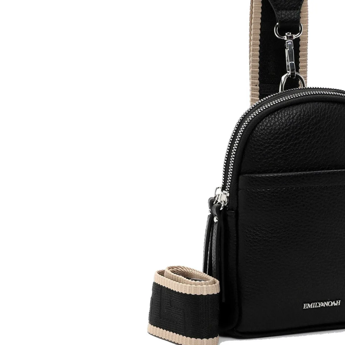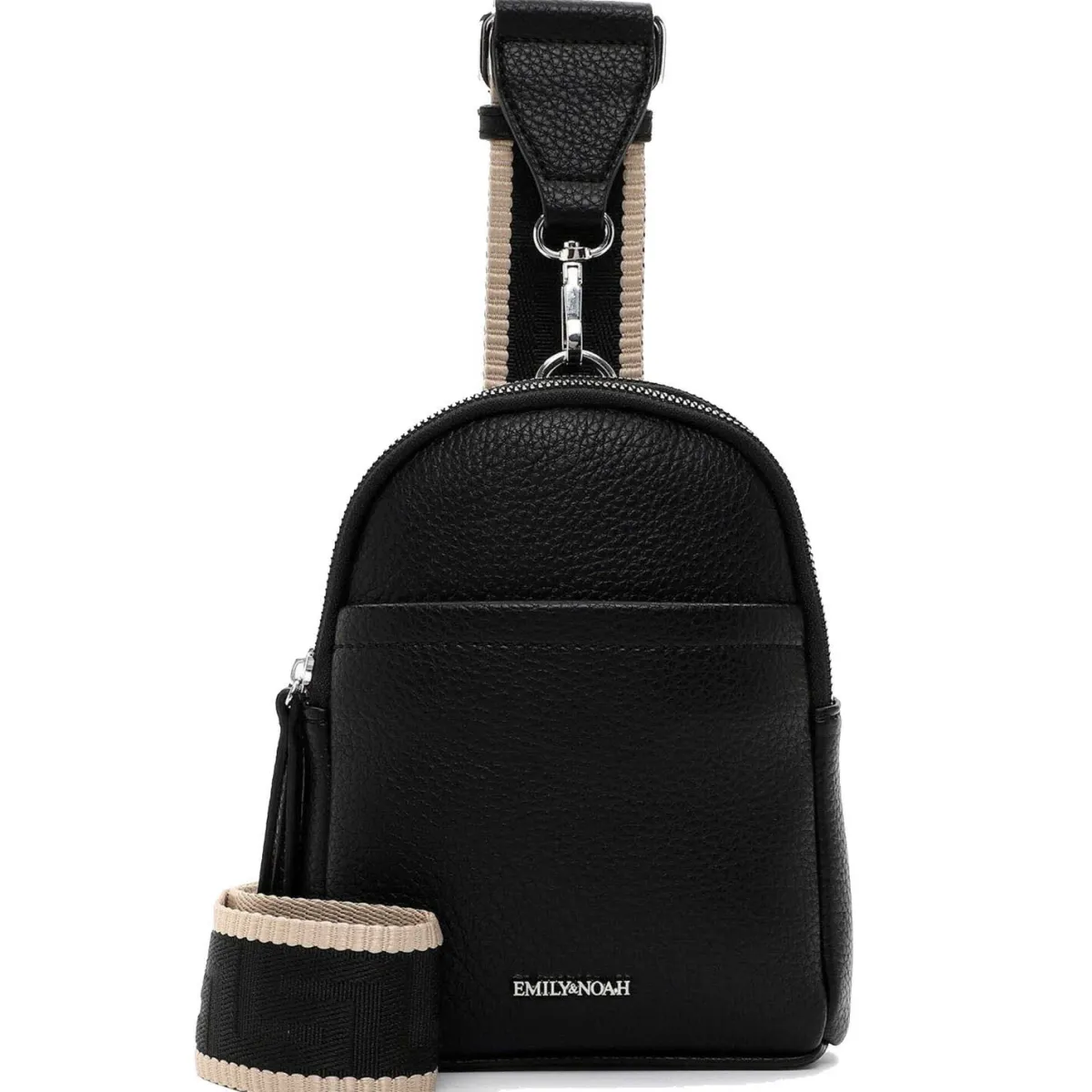 Edel verarbeitetes Kunstleder in Schwarz wurde mit einer angenehmen Haptik versehen, die der Umhängetasche das gewisse Etwas verleiht. Durch den verstellbaren Umhängegurt in Web-Optik kannst du die Tasche auch crossover tragen.