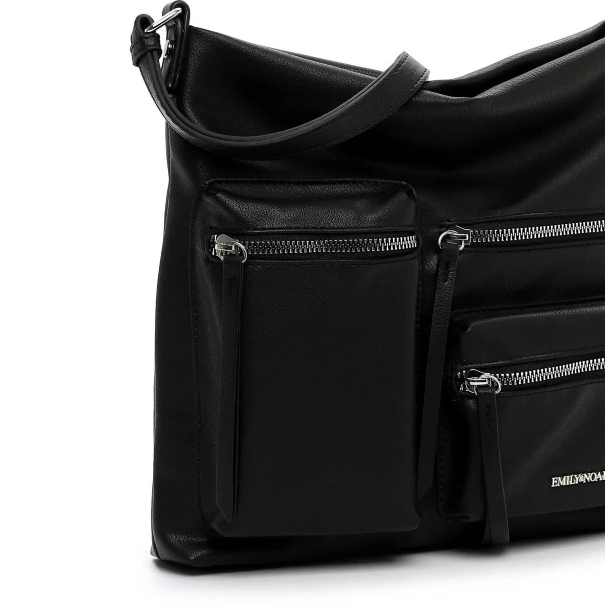 Edel verarbeitetes Kunstleder in Schwarz wurde mit einer angenehmen Haptik und einer authentischen feinen Narbung versehen, die der Handtasche das gewisse Etwas verleiht. Der Umhängegurt ist verstellbar, so dass du die Tasche perfekt anpassen kannst.