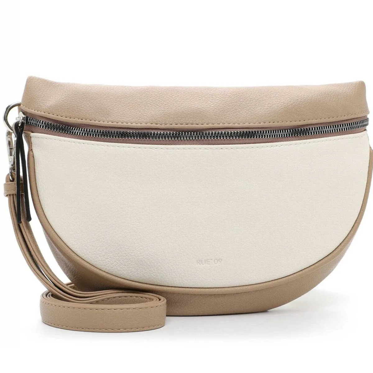 Edel verarbeitetes Kunstleder in Beige und Braun wurde mit einer angenehmen Haptik versehen, die der Umhängetasche das gewisse Etwas verleiht. Durch den verstellbaren und abnehmbaren Umhängegurt kannst du die Tasche auch crossover tragen.