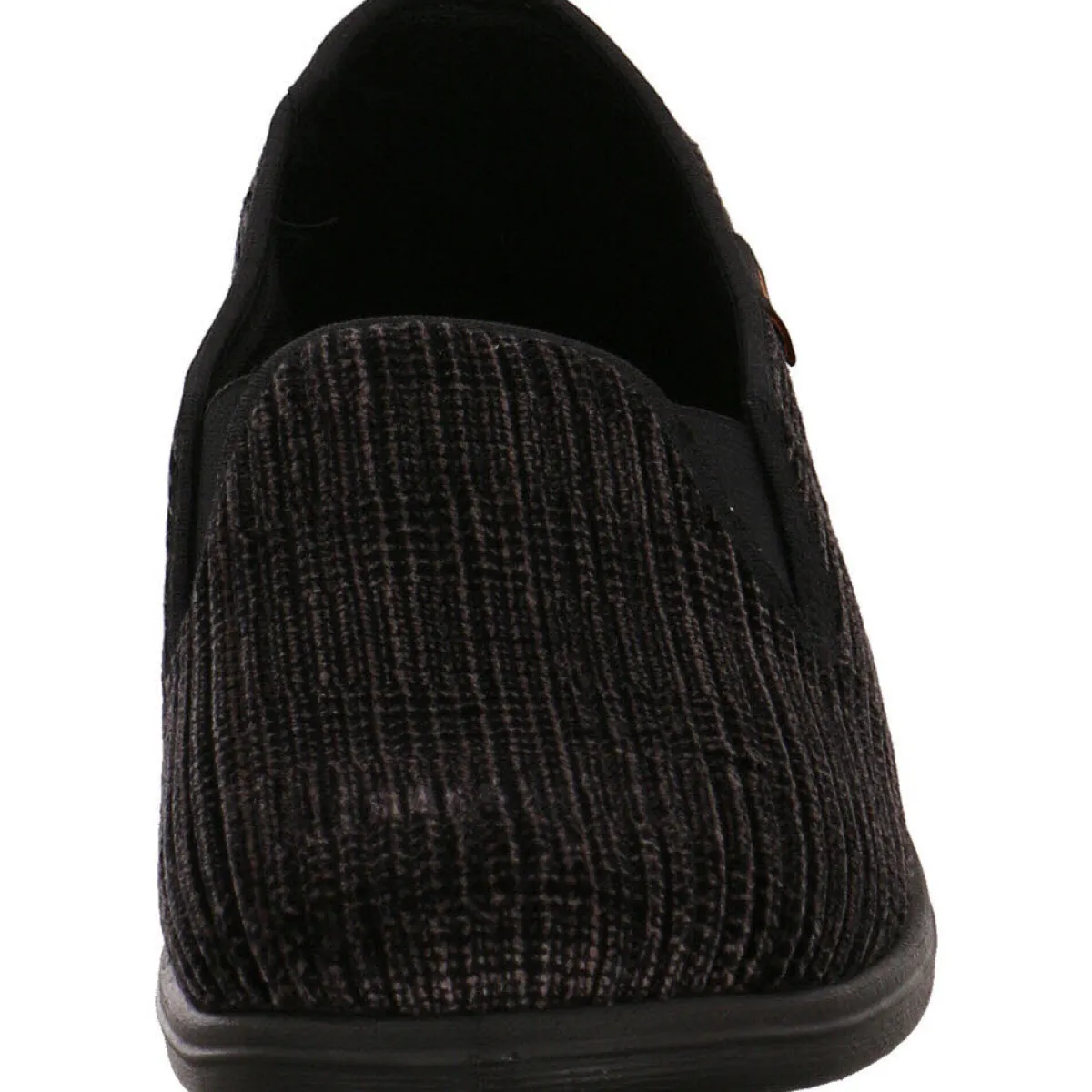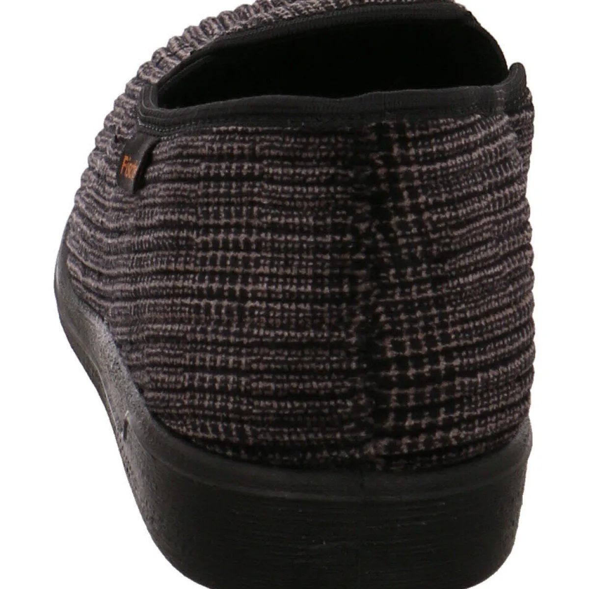 Das textile Obermaterial in grau schwarz ist robust und zugleich absolut flexibel und das Frotteefutter sorgt stets für ein angenehm warmes Klima im Schuh.