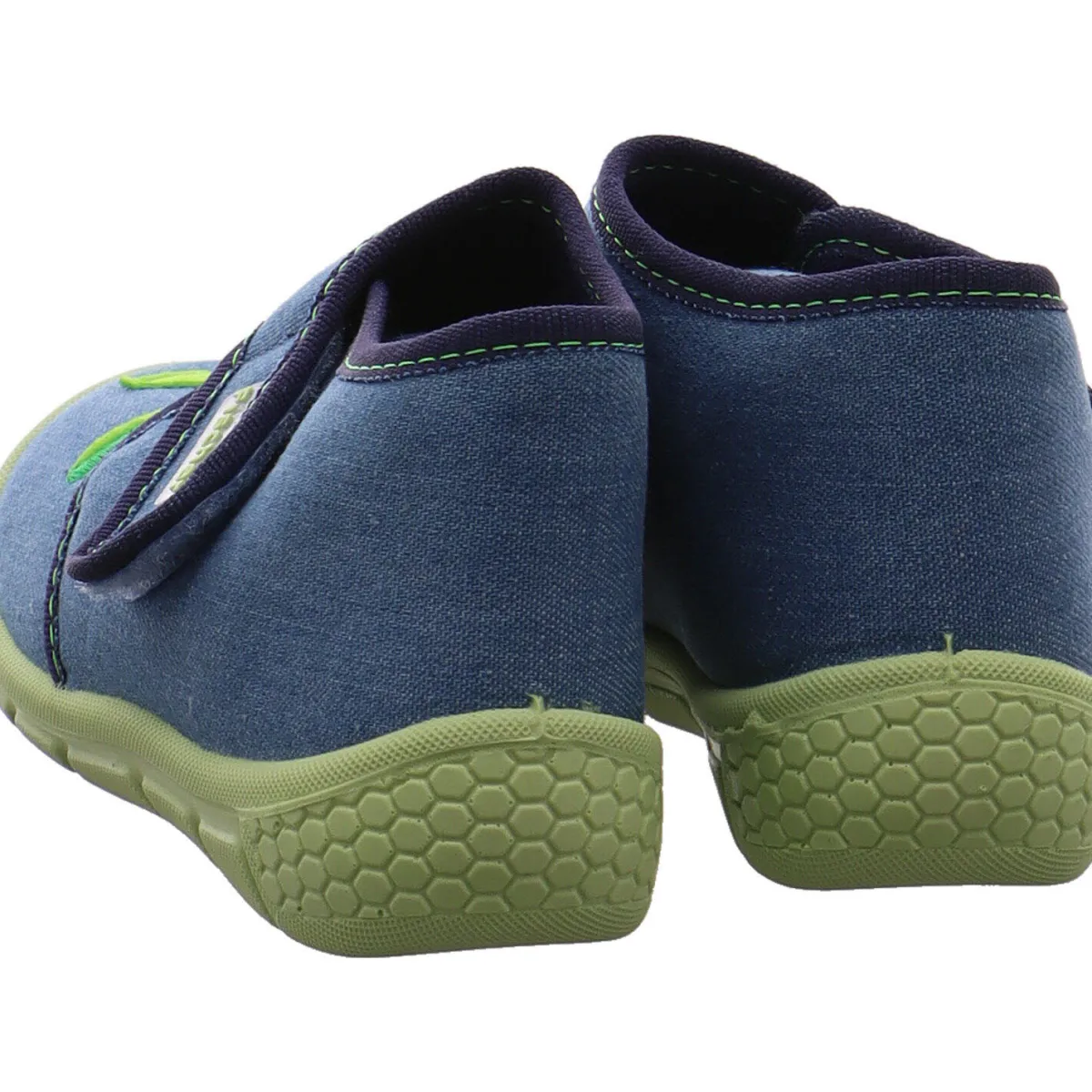 Der Schuh ist aus strapazierfähiger Baumwolle in Jeans Blau gefertigt, innen frottiert und sehr leicht. Zudem lässt er sich durch den seitlichen Klettverschluss leicht an- und ausziehen, was beim Spielen oft von Vorteil ist. Die Touch Me Decksohle ist extra gepolstert um ein angenehmes Tragen zu gewährleisten.