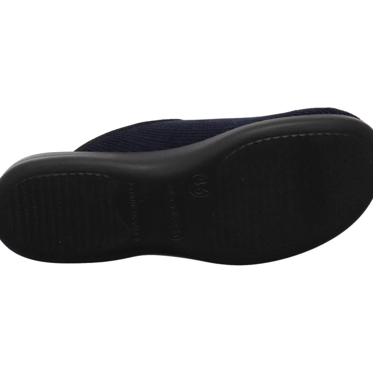 Er wurde aus hochwertigem Obermaterial aus Textil in Blau gefertigt. Die leicht profilierte Synthetik Laufsohle gibt guten Halt. Ein weiteres Highlight ist das du ihn in der Maschine waschen kannst. Ein toller Begleiter für gemütliche Stunden in deinem Zuhause.
