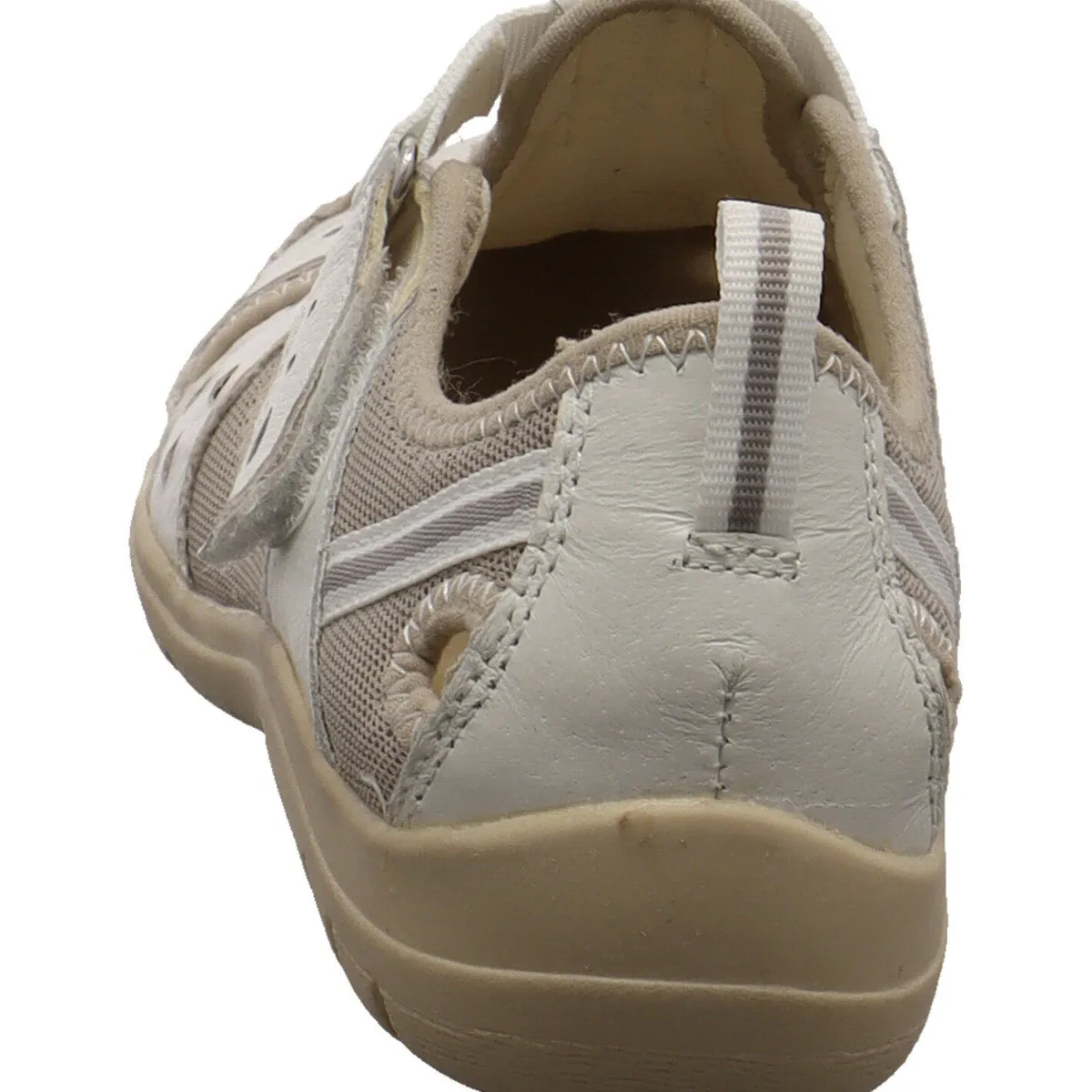 Das Obermaterial wurde aus Echtleder in Weiß gefertigt. Die Cutouts in Verbindung mit den Textil Mesh Einsätzen bieten eine optimale Belüftung der Füße auch an warmen Tagen.