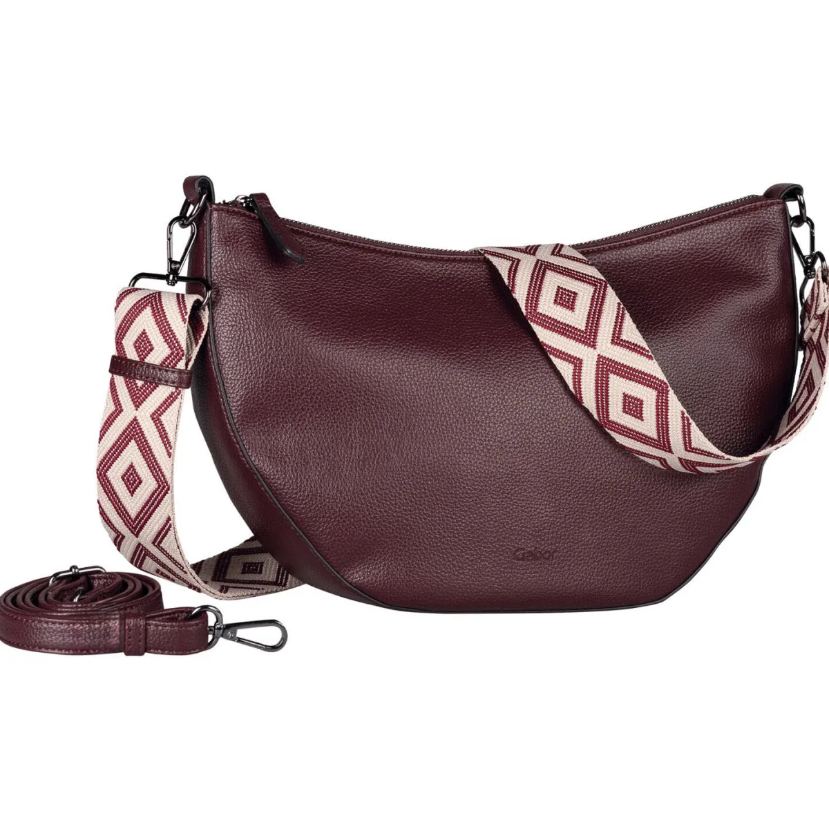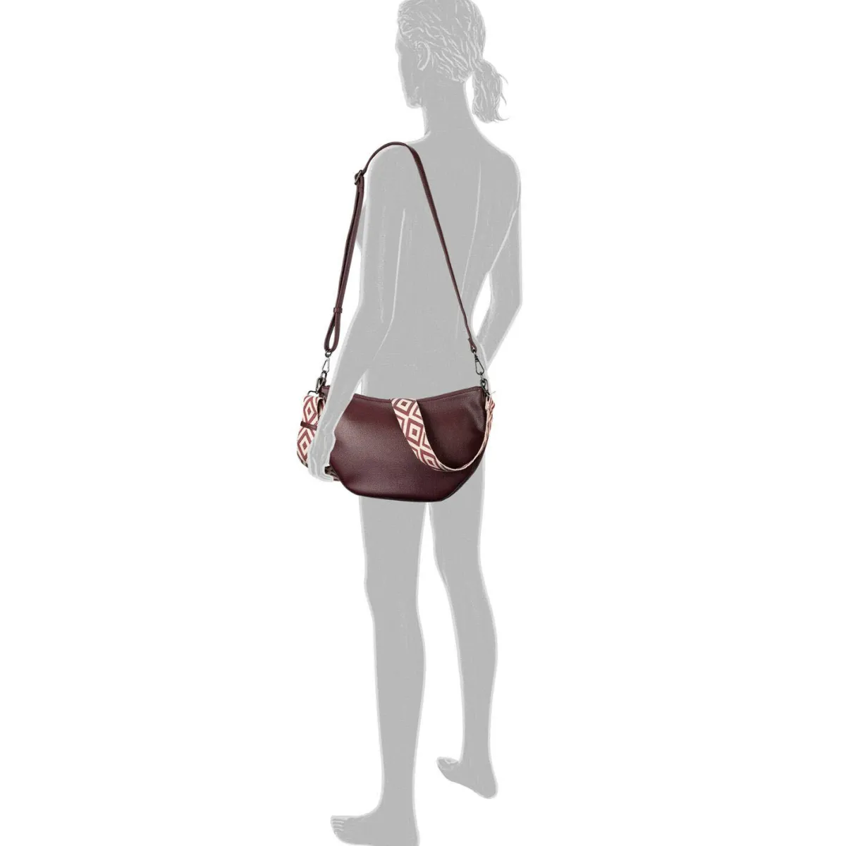 Der Schultergurt ist mit einem grafischen Muster versehen und abnehmbar und der mitgelieferte Umhängegurt in Rot ermöglicht auch ein Crossover Tragen der Handtasche.