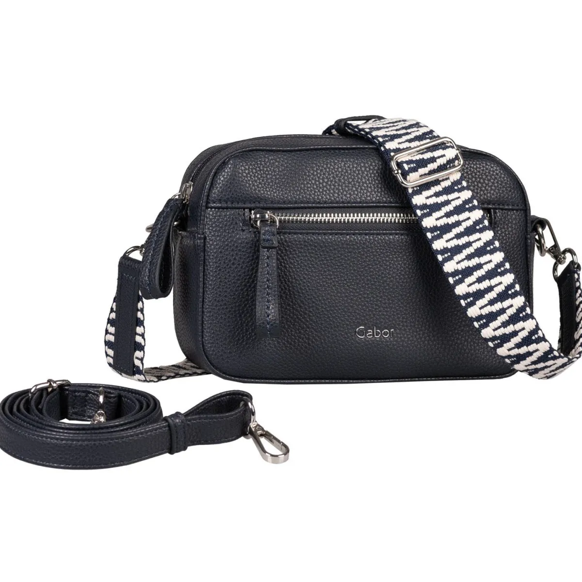 Die Handtasche wurde aus hochwertig verarbeitetem Kunstleder in Blau gefertigt und mit einem abnehmbaren Umhängegurt mit hübschem Muster versehen, welcher der Tasche das gewisse Etwas verleiht. Das Gabor Markenlogo rundet das Design gekonnt ab.
