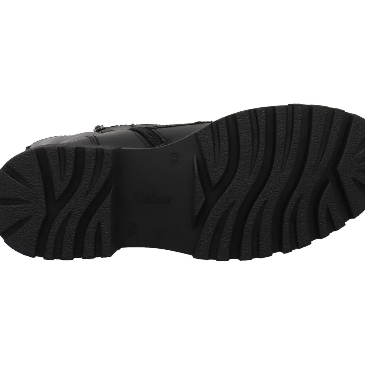 Er wurde aus Echtleder in Schwarz gefertigt. Auf dem Rist und an der Seite befindet sich je ein Reißverschluss. Dank diesen und der Lasche am Schaft ist das An- und Ausziehen gant einfach.