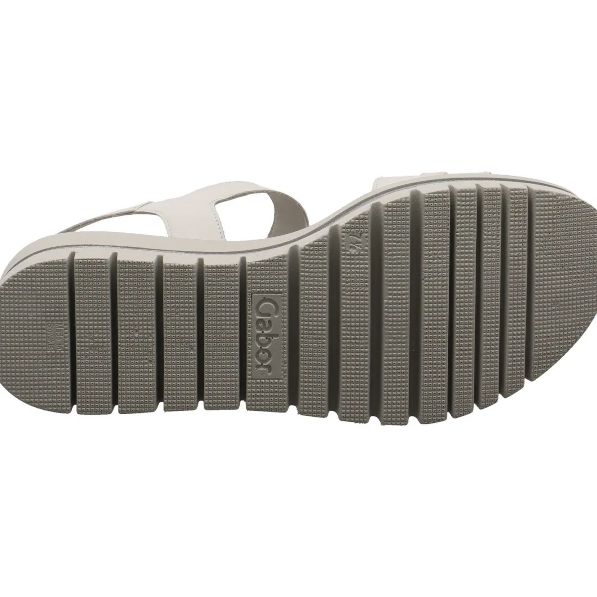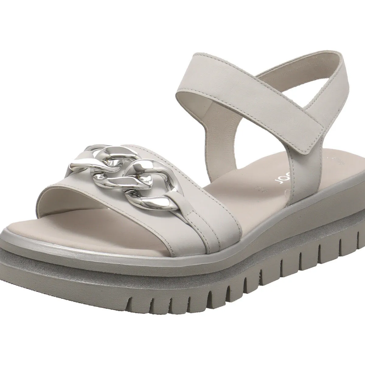 Ein besonderes Highlight ist die markante, profilierte Plateau Laufsohle, welche mit der Umrandung in Silber perfekt zum Gesamtbild des Sommerschuhs passt.