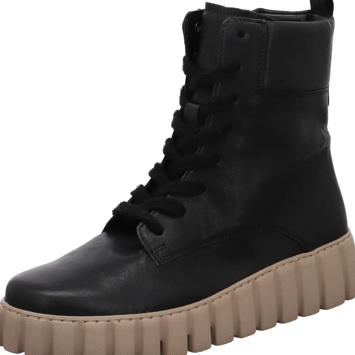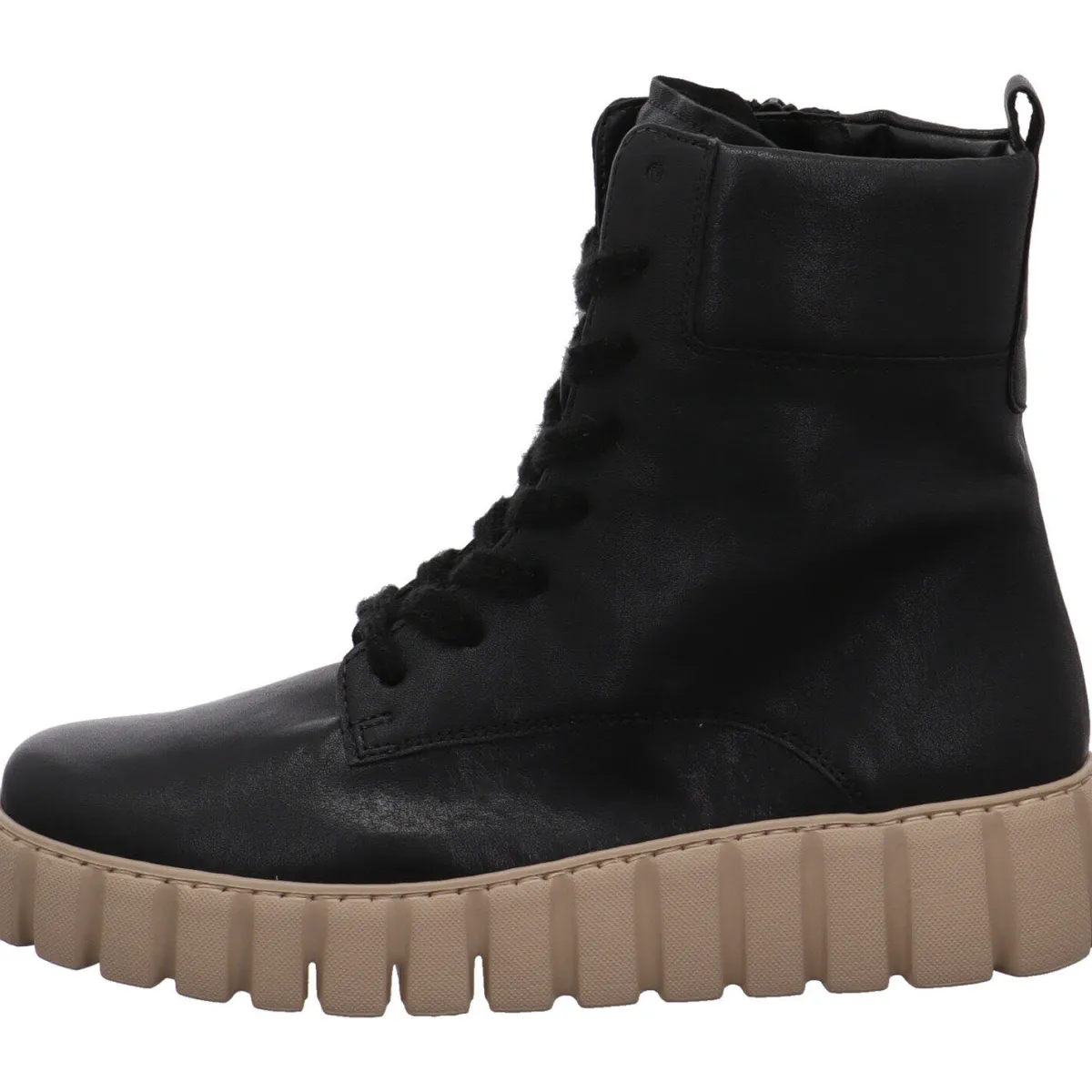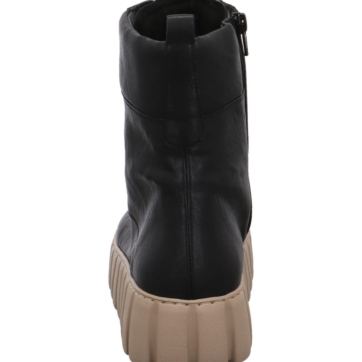 Eyecatcher ist die flache Plateausohle mit ihrer individuellen Profilierung und der Kontrastfarbe Beige.