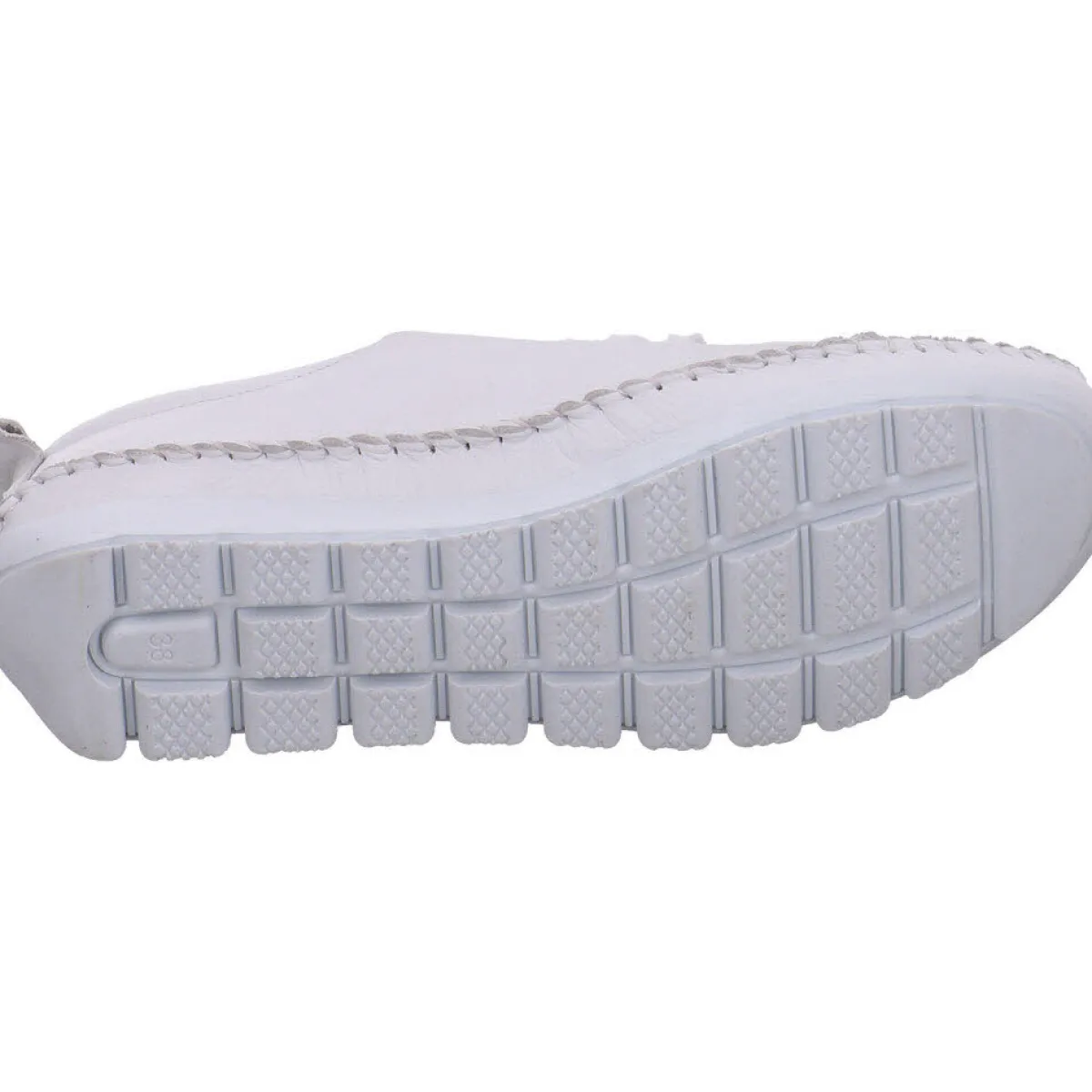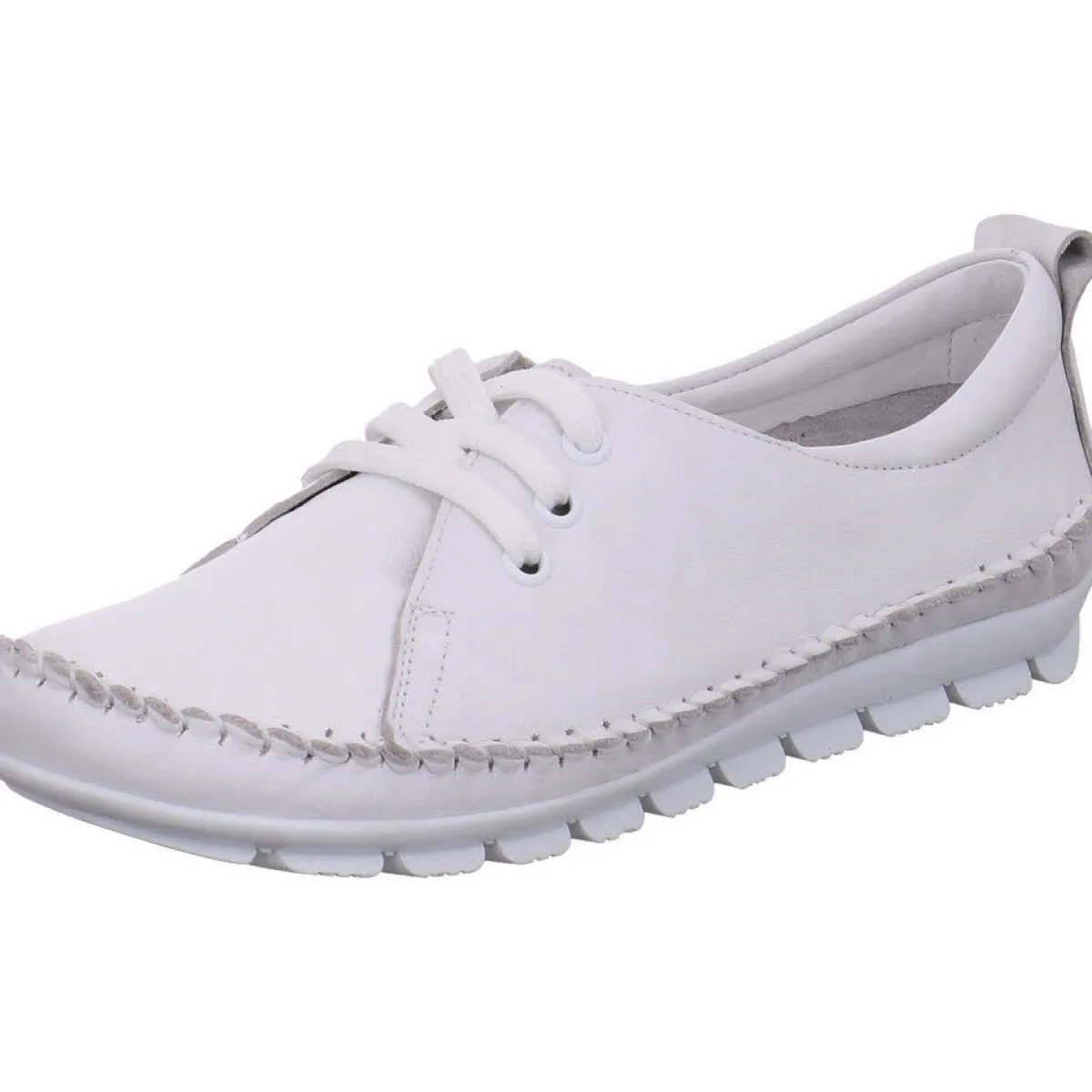 Das Obermaterial aus hochwertigem weichen Echtleder in Weiß ist mit einer Ziernaht umrandet und verleiht dem Schuh einen sportlichen Look.