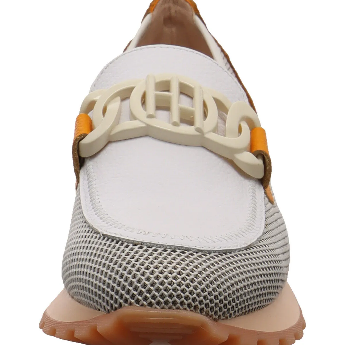 Die Gliederkettenverzierung in Beige am Spann ist das absolute Highlight und rundet das Design gekonnt ab. Dieser Schuh verfügt über die TRIFLOW-Technologie, die jeden Schritt dämpft und dank seiner dreifachen Polsterung für Flexibilität und Komfort beim Gehen sorgt. Die Laufsohle wurde in hellem Lachs Orange gehalten und ist mit der Hispanitas Markenaufschrift versehen. Die als Wechselfußbett gearbeitete Innensohle ermöglicht die Benutzung von eigenen Einlagen.