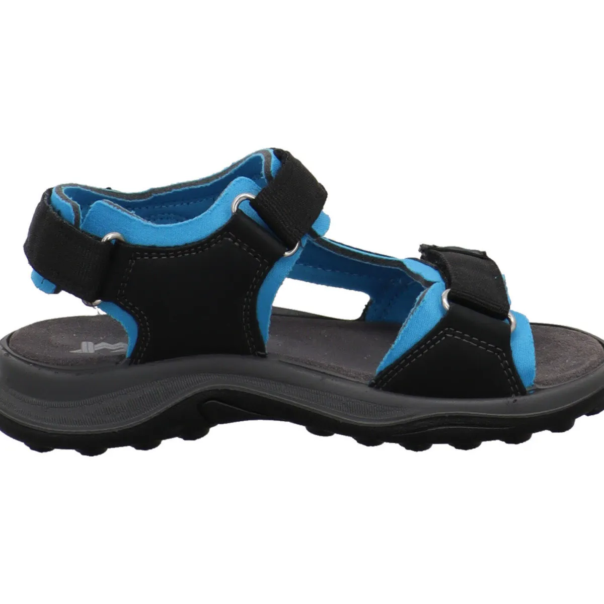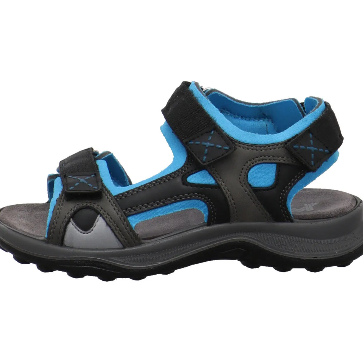 Gefertigt aus einem Mix aus Kunstleder in Schwarz und Textil in Blau bietet er ein angenehmes Tragegefühl. Durch den dreifachen Klettverschluss lässt der Schuh im Trekking Look sich optimal dem Fuß anpassen.