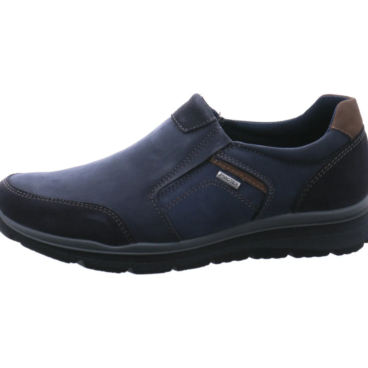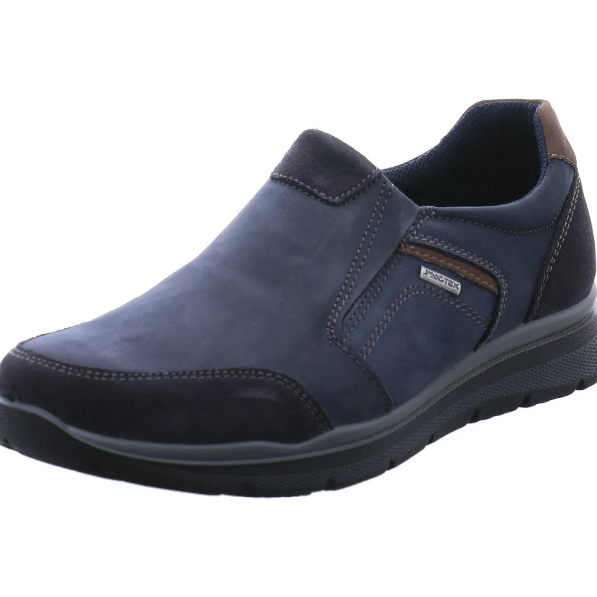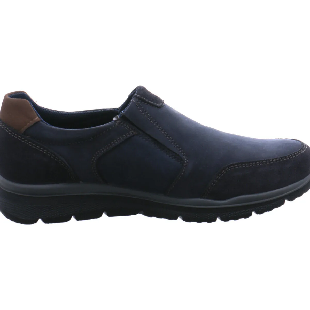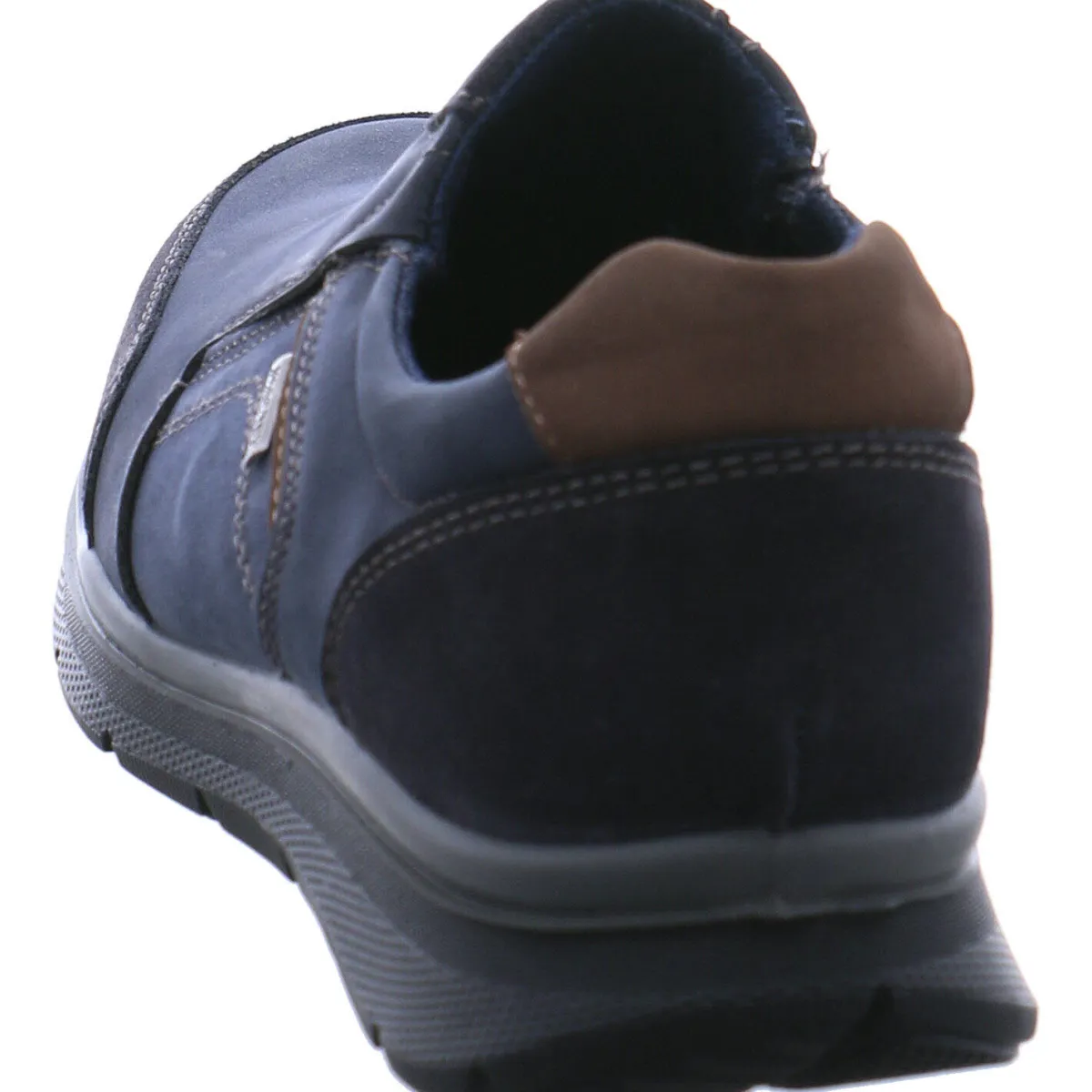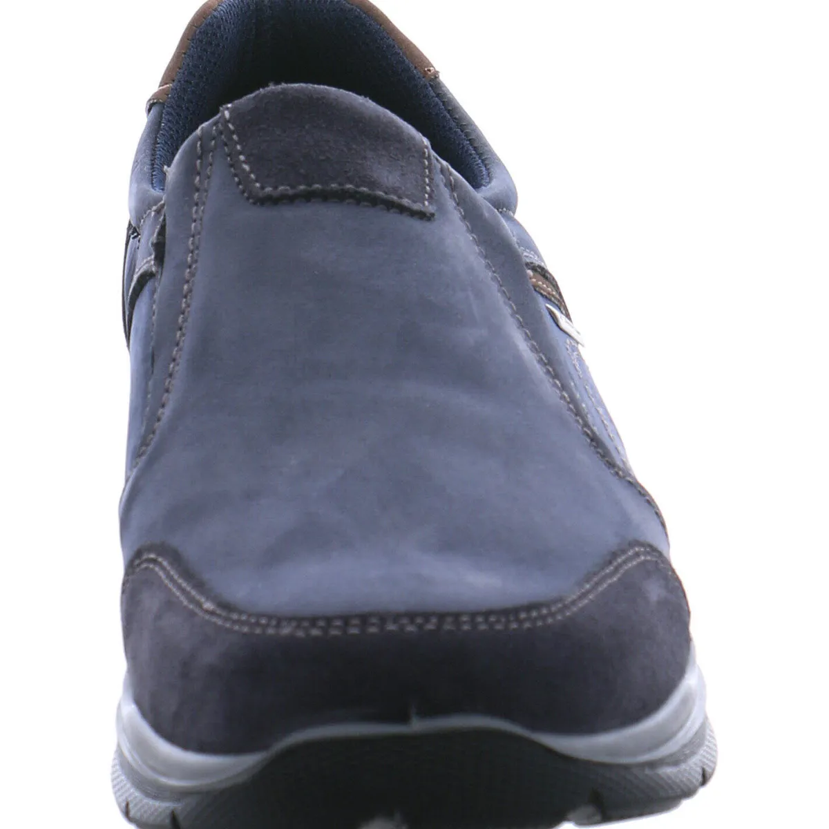 Gefertigt aus hochwertigem Nubukleder in Blau ist er mit einer modischen Overlay Struktur versehen, welche durch helle Ziernähte und Farbakzente in Braun gekonnt in Szene gesetzt wird.