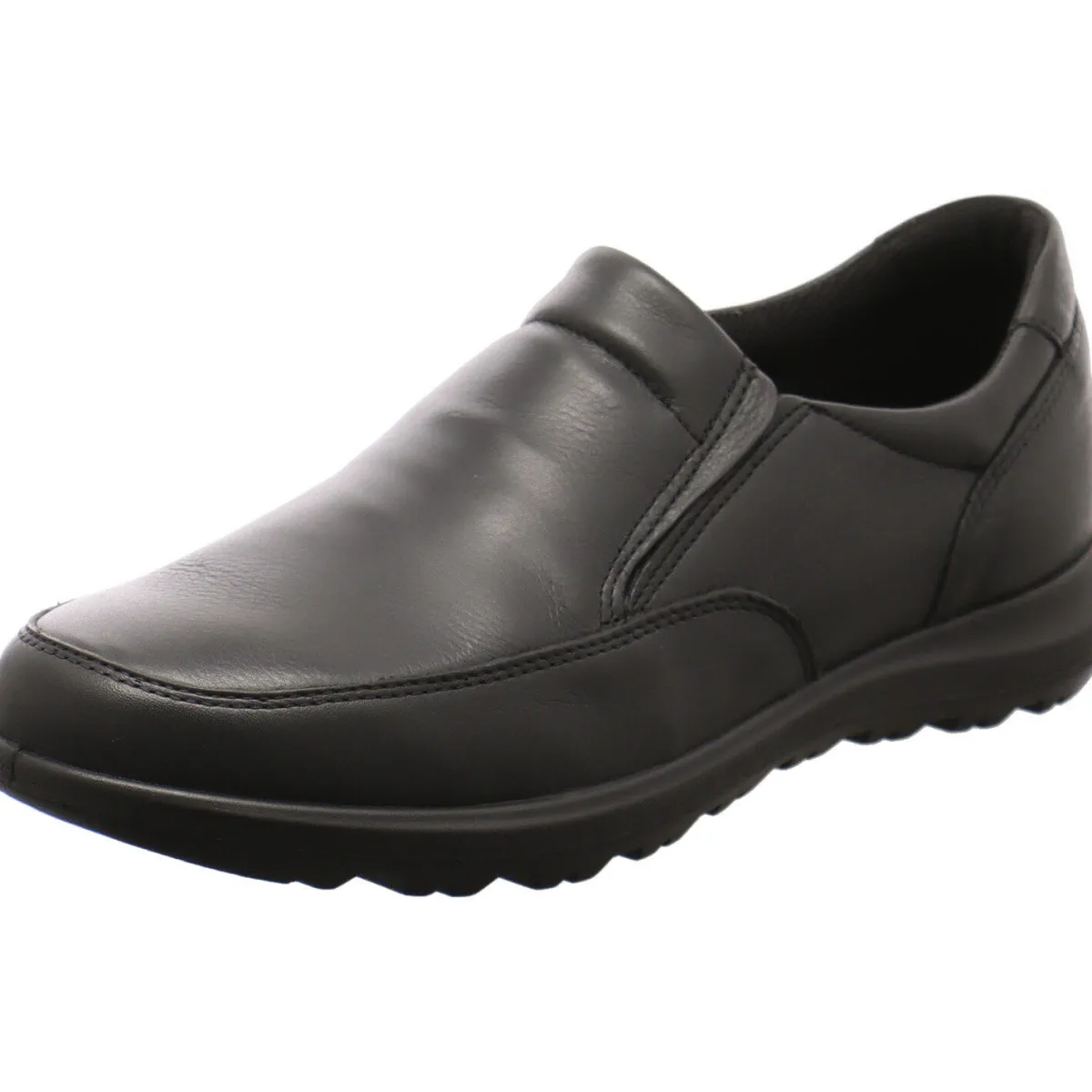 Das Obermaterial wurde aus hochwertigem Echtleder in Schwarz gefertigt und der Slipper ist im Inneren angenehm mit Textil gepolstert.