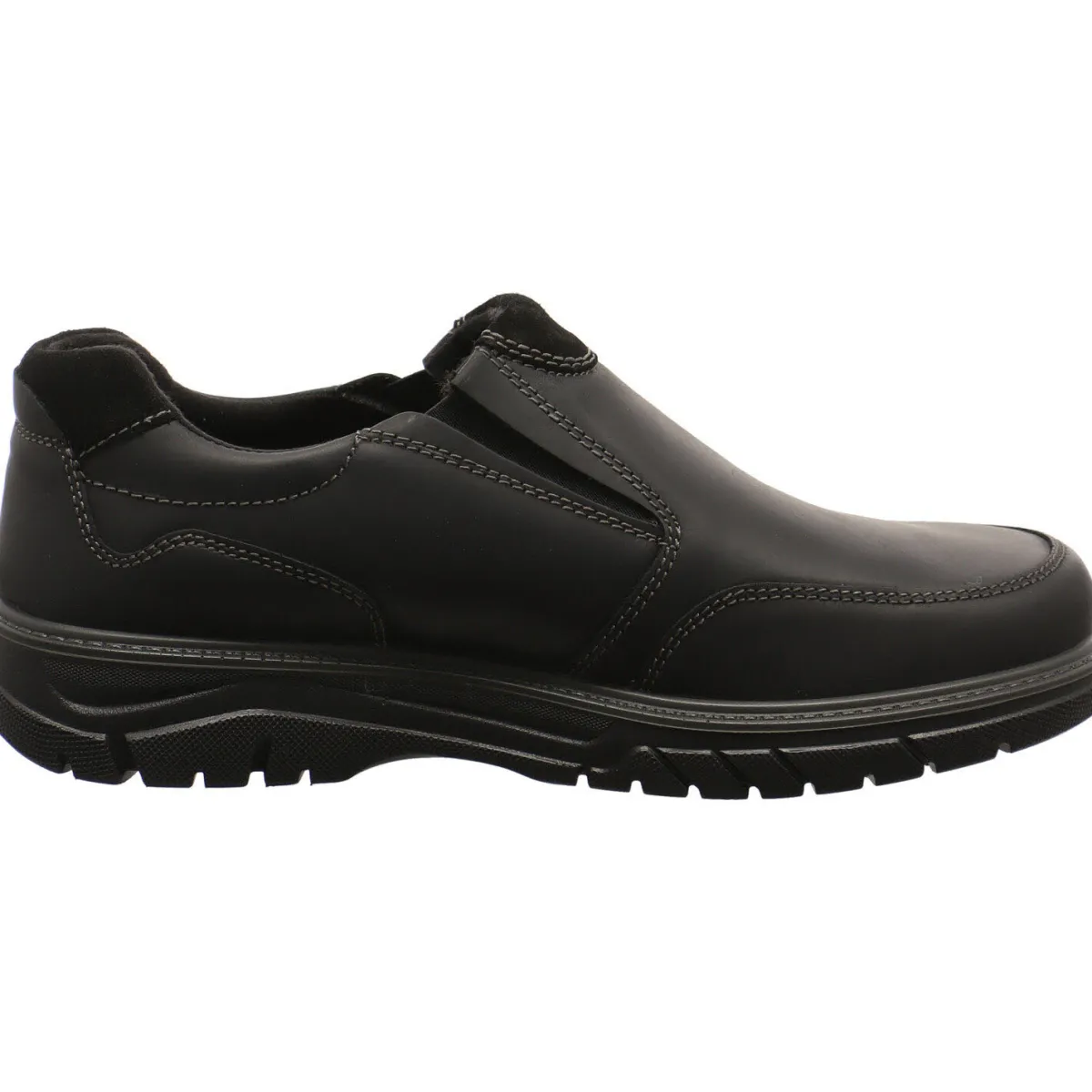 Das Obermaterial aus weichem Echtleder in Schwarz, ist mit hellen Steppnähten versehen. Der gepolsterte Schaft hat Einsätze aus Veloursleder, die das klassische Design ein wenig auflockern.