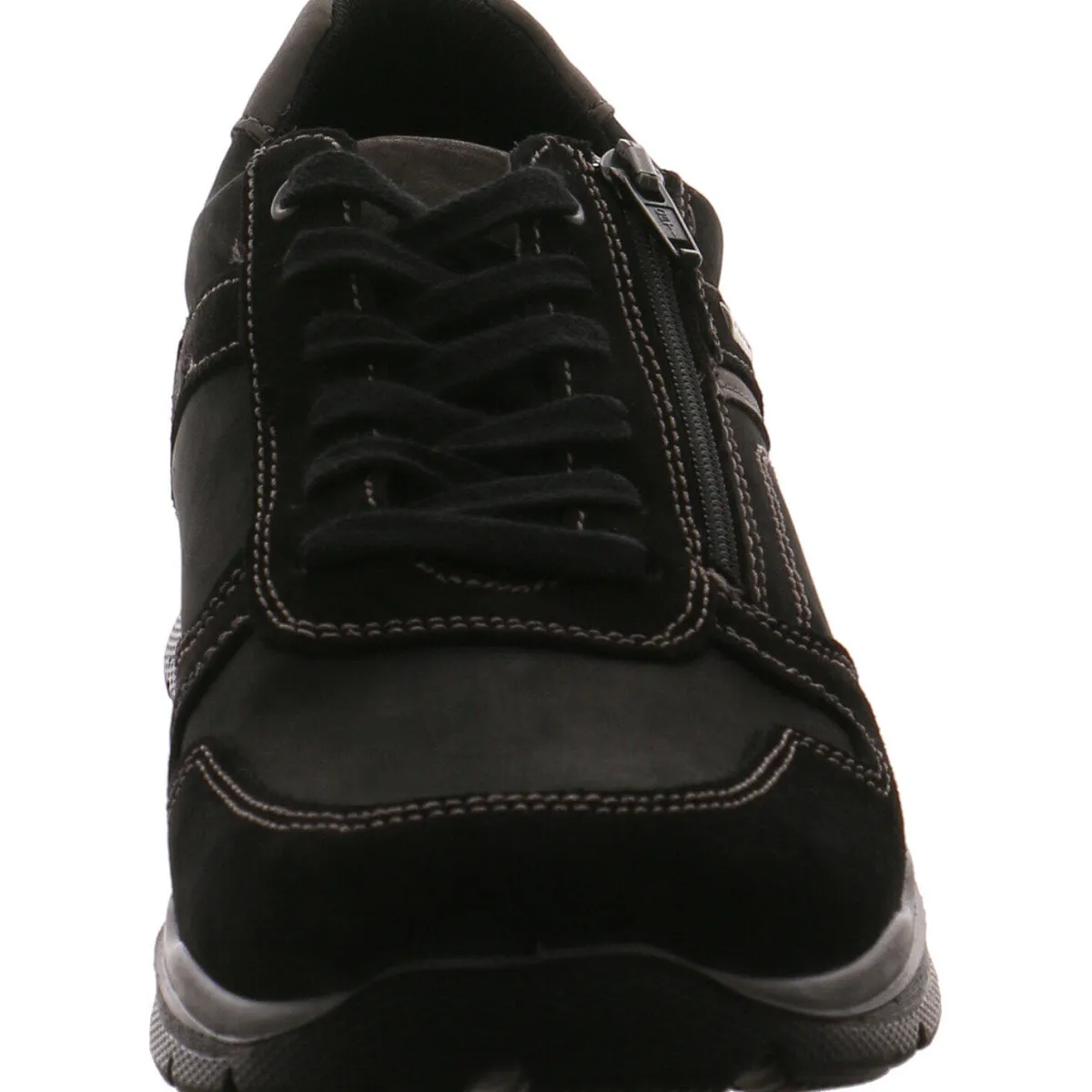Gefertigt aus hochwertigem Nubukleder in Schwarz ist er mit einer modischen Overlay Struktur versehen, welche durch helle Ziernähte und Farbakzente in Grau gekonnt in Szene gesetzt wird.