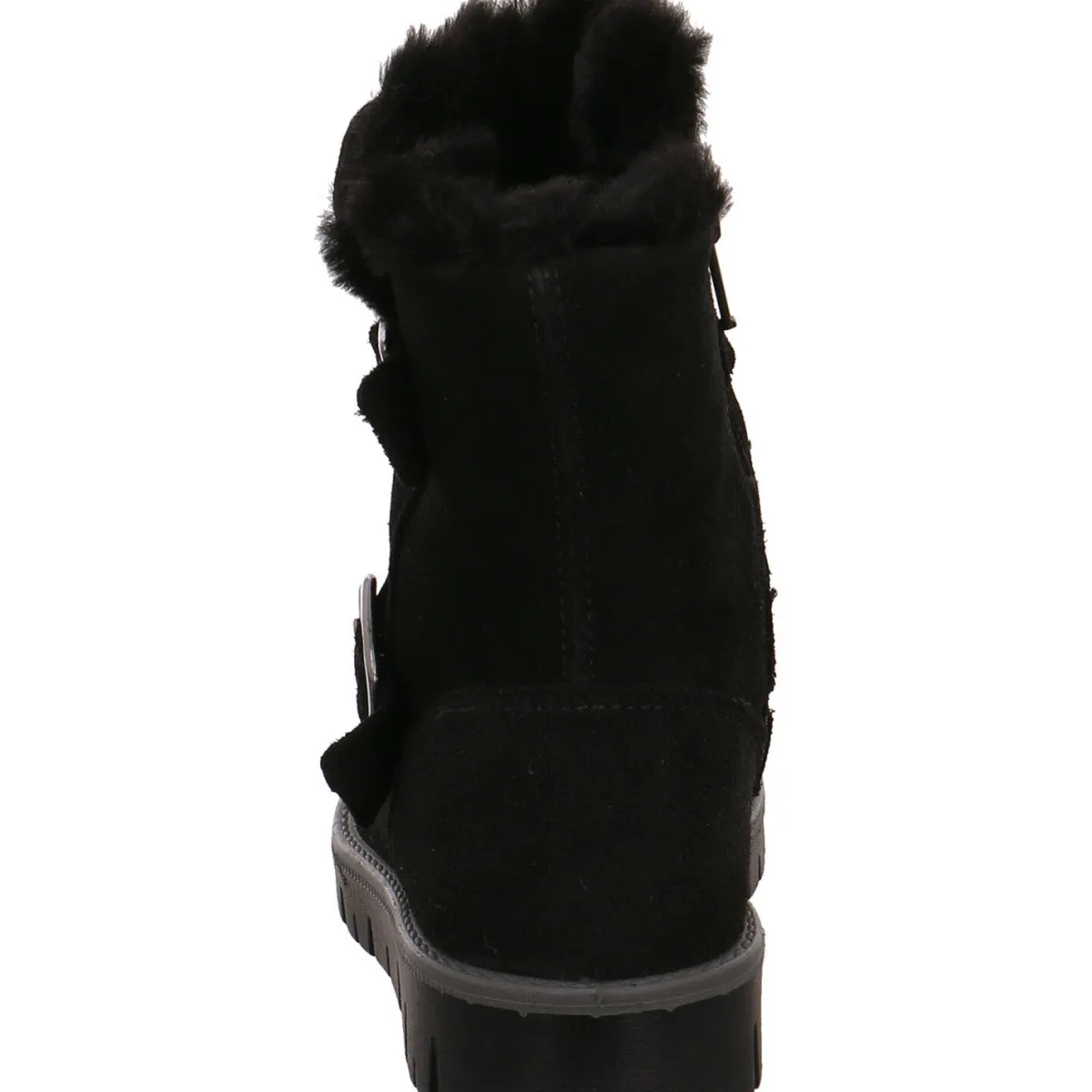 Gefertigt aus hochwertigem Veloursleder in Schwarz ist er mit zwei Riemen mit Schnalle um den Schaft verziert.