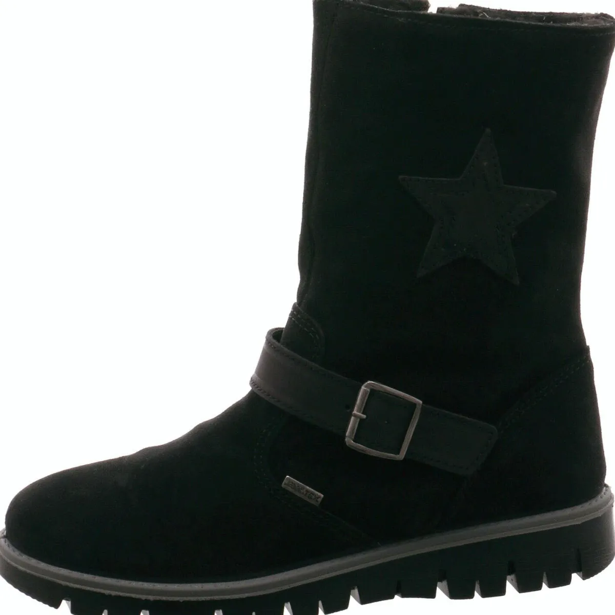 Gefertigt aus hochwertigem Veloursleder in Schwarz ist er mit einem Stern am Schaft verziert.