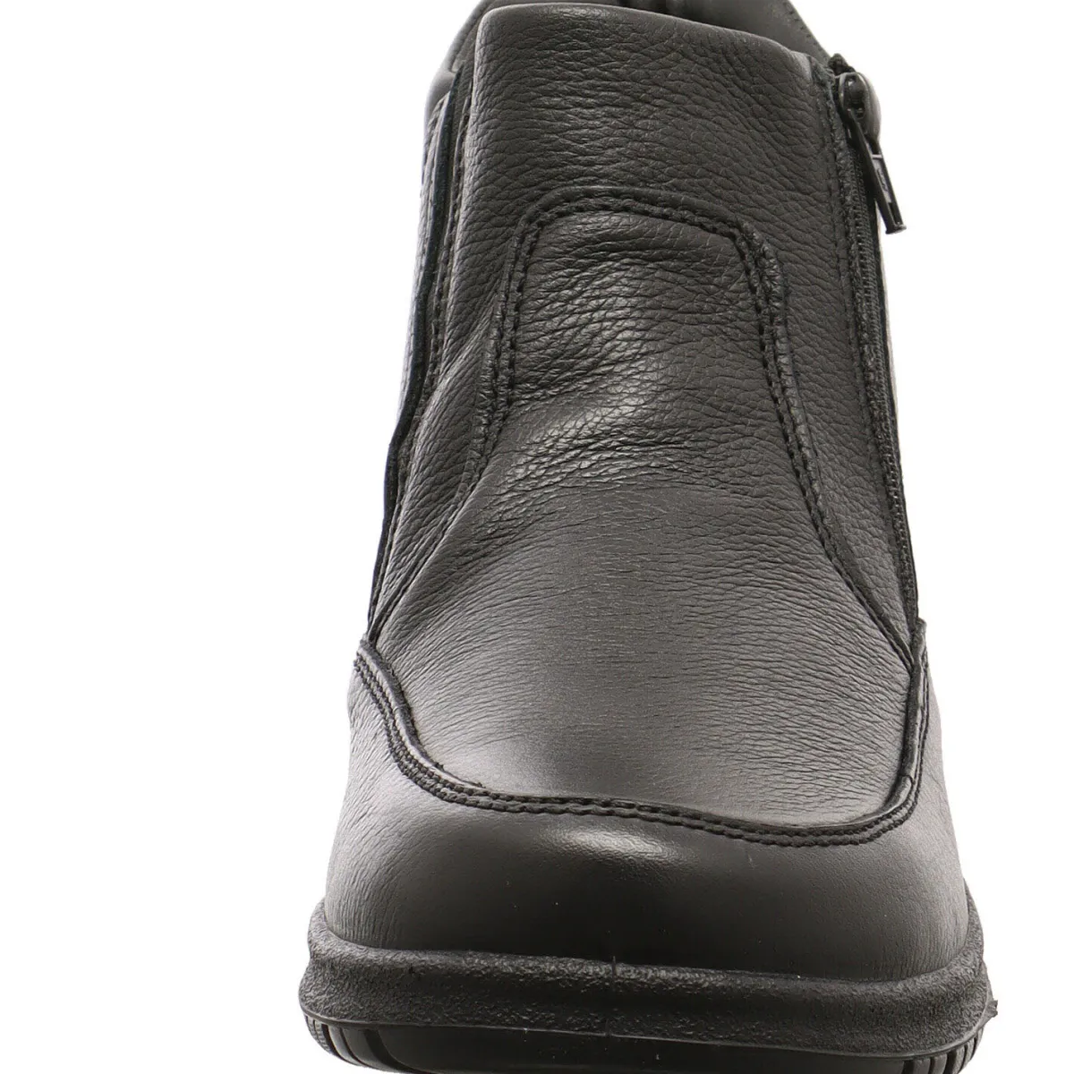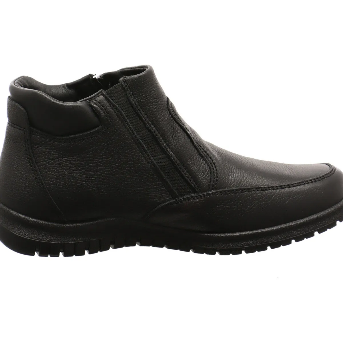Der Reißverschluss auf der Außenseite und das Gummipanel auf der Innenseite, sichern ein leichtes An- und Ausziehen. Für optimalen Tragekomfort sorgt die weiche Innensohle, welche als Wechselfußbett gearbeitet ist. Außerdem bietet der Stiefel durch seine patentierte „Shock Absorber“ Sohle für ein angenehmes Gehen.