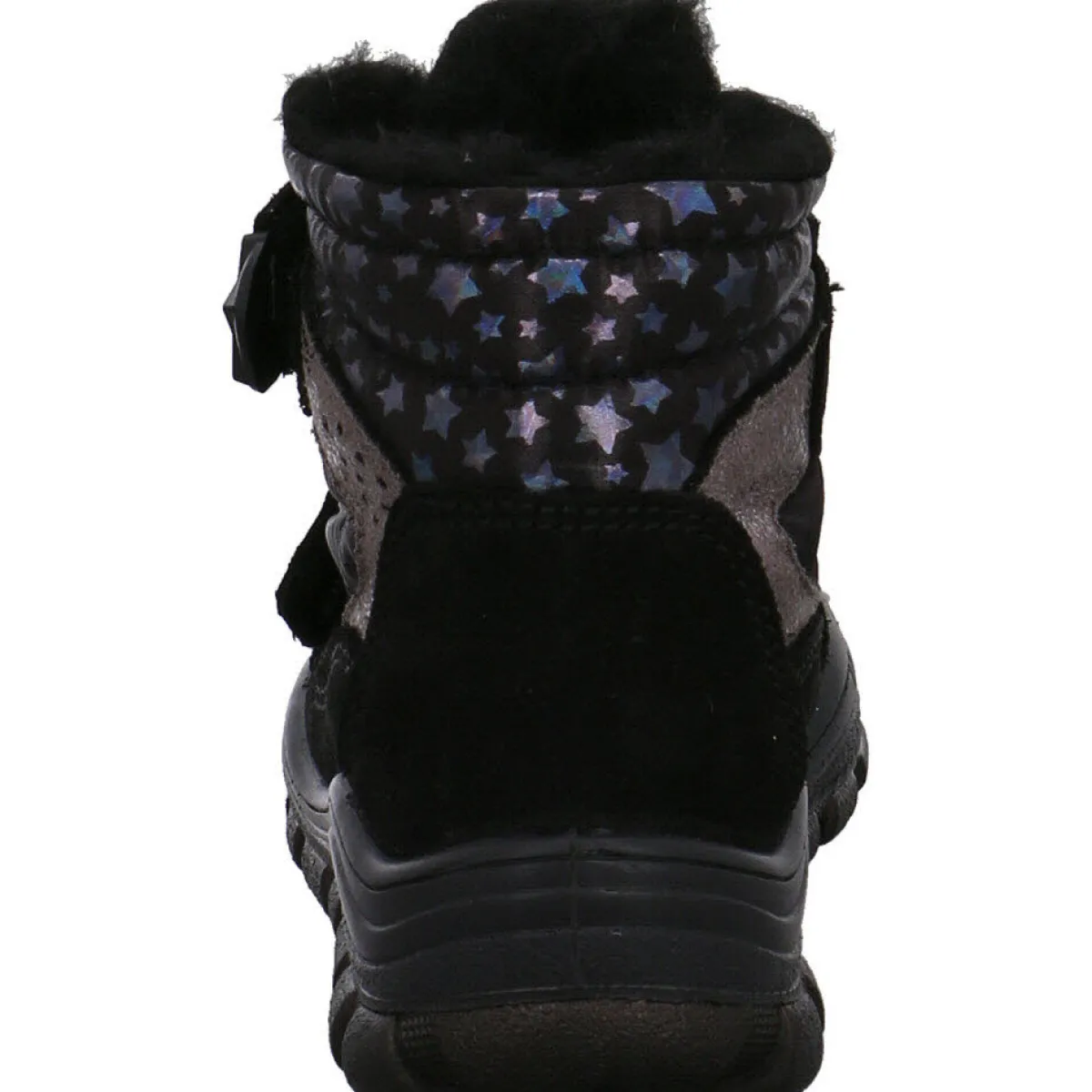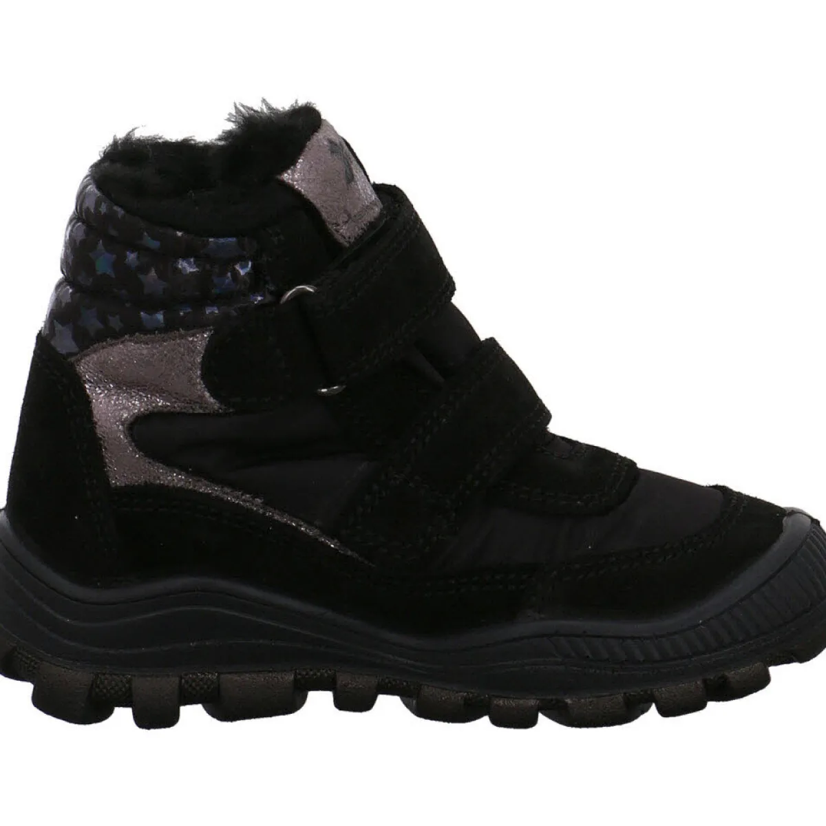 Das Highlight dieses Schuhs sind der Schaftabschluss mit den glänzenden Sternen und die Silberoptik an den Seiten.