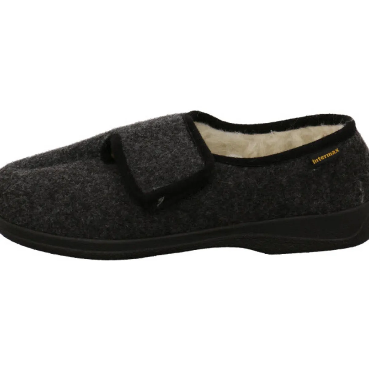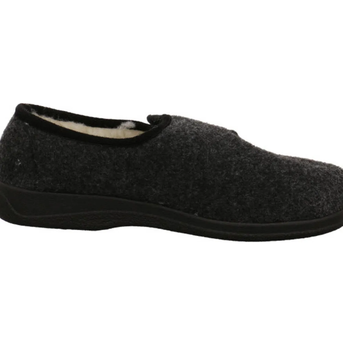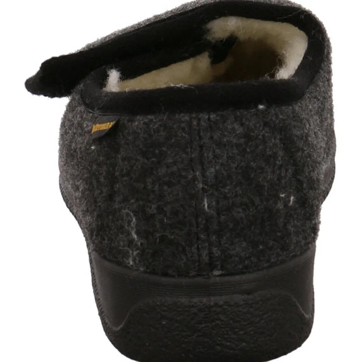 Der Hausschuh ist mit einem mollig warmen Innenfutter aus echter Schurwolle ausgestattet und der Klettverschluss sorgt für eine perfekte Passform und einen leichten Einstieg.