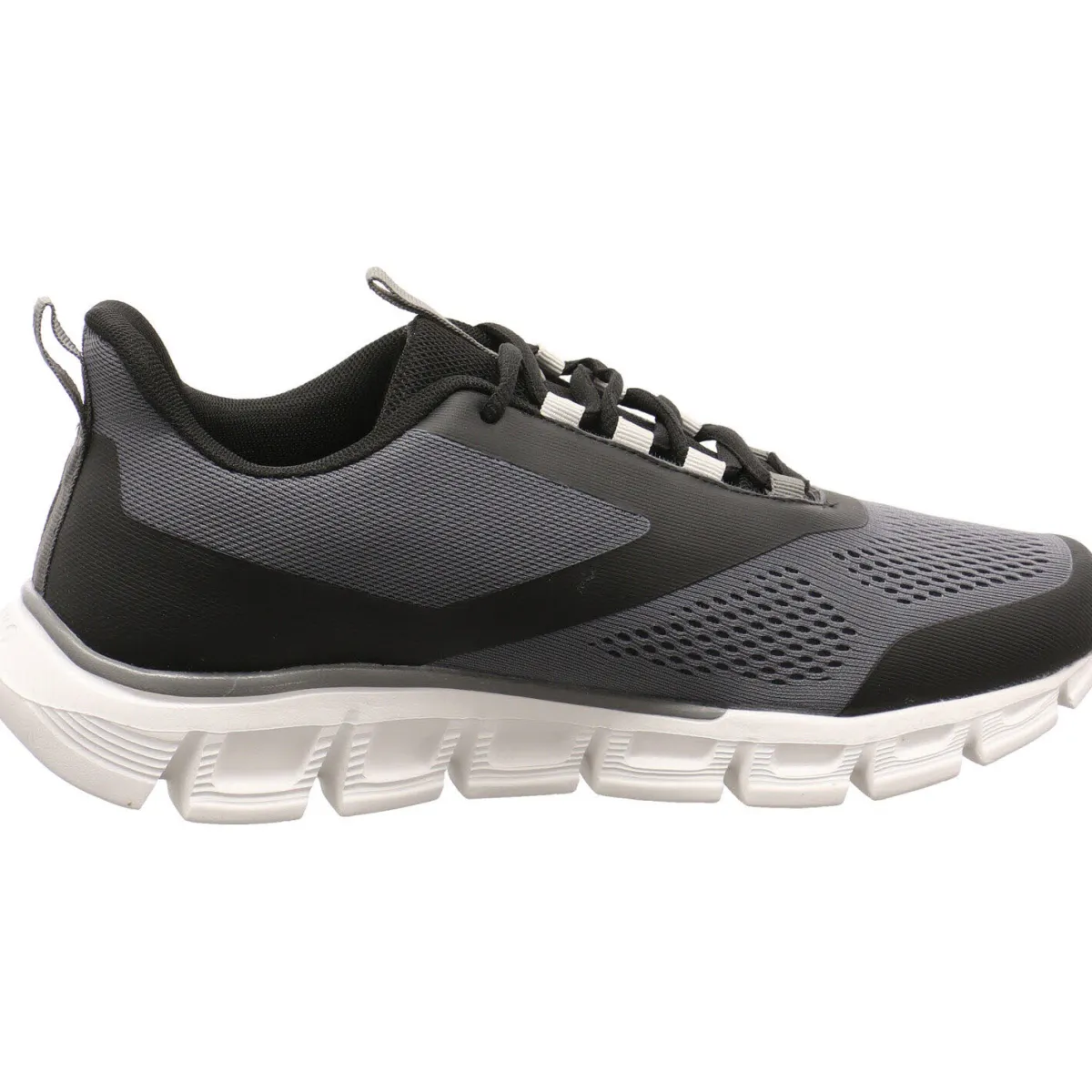 Das Obermaterial ist aus einem Mix aus Air Flow Mesh Textil in Schwarz, mit Grau und stabilisierenden Synthetik Einsätzen. Air Flow Mesh ist ein offenporiges Meshmaterial, das für sehr gute Atmungsaktivität sorgt. Durch die Schnürung ist ein leichter Einstieg möglich und der Schuh lässt sich optimal an den Fuß anpassen. Die ShockAbsorb EVA-Zwischensohle sorgt für optimale Energierückgewinnung bei jedem Schritt. Zudem hält die Fast Dry Lining Technologie den Fuß bei jeder Anstrengung trocken. Das Material ist schnelltrocknend und nimmt Schweiß effektiv auf und transportiert diesen weg von der Haut.